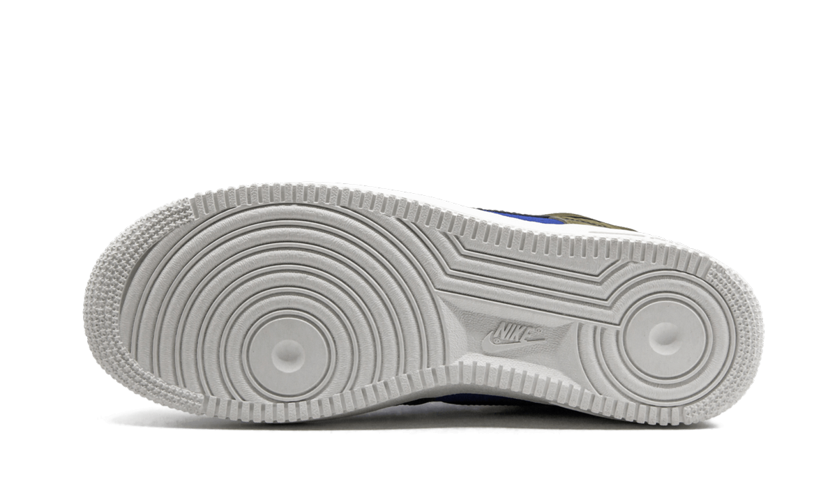 The Nike Air Force 1 Hi Premium Suede is a women’s lifestyle sneaker presented in a royal blue and olive green color scheme with black accents on the Swoosh, laces, and Nike branding. The shoe design adds flair with textural suede overlays that take on a 3D-geometric pattern. The Nike Air Force 1 Hi Premium Suede comes with a trademark ankle strap and is finished with a contrasting white midsole and outsole. Olive Flak