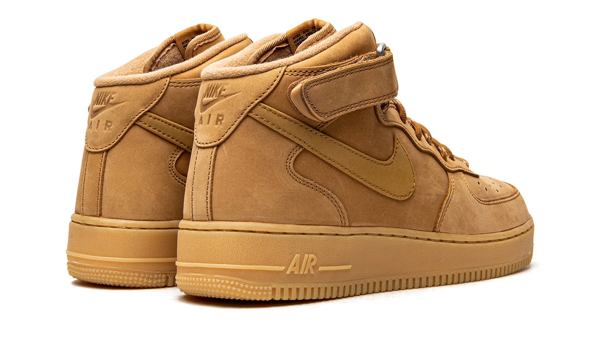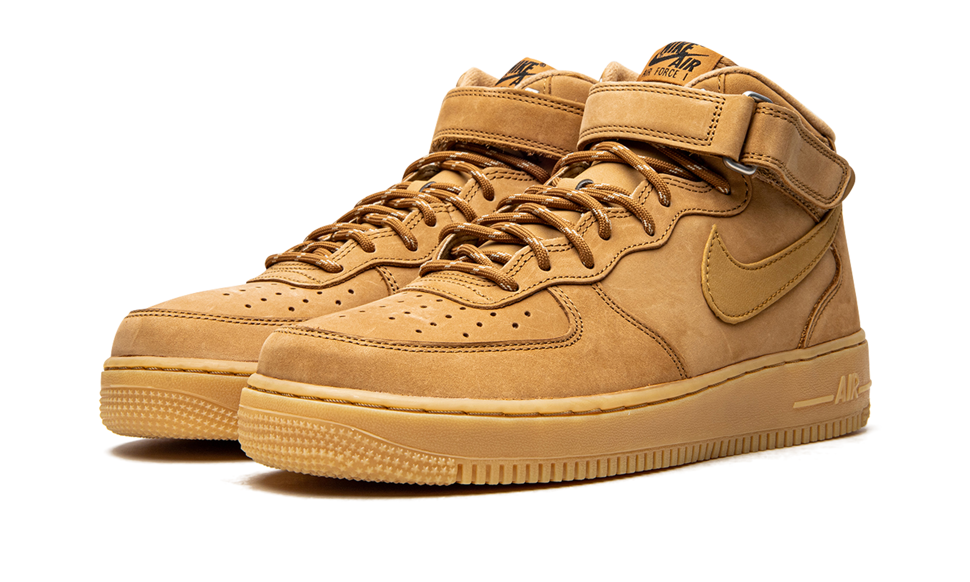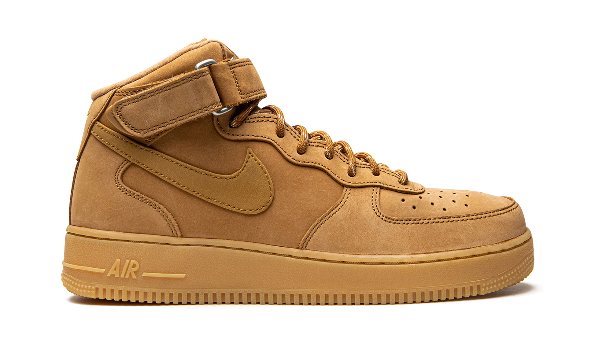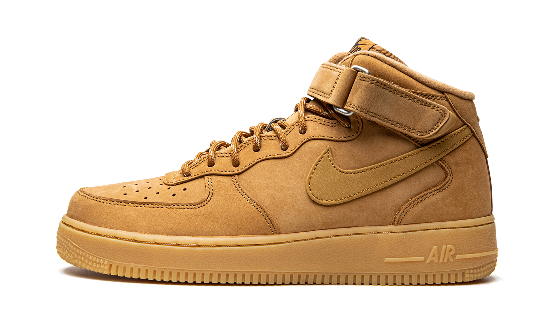 The Nike Air Force 1 Mid “Flax” is a popular colorway inspired by classic construction boots. The original Air Force 1 “Flax” makeup was released back in the early 2010s as a homage to the look of tan construction boots, particularly the Timberland 6” Premium Boot worn by construction workers and street style stars alike. The shoe features a monochromatic Flax suede upper with tonal Swoosh branding on the sides. Both the adjustable ankle strap found on the collar and the overlays are designed in Flax suede. Rope-style laces give the shoe a classic boot-like appearance. Underfoot, a wheat-colored rubber midsole with “Air” branding on the lateral side completes the look.