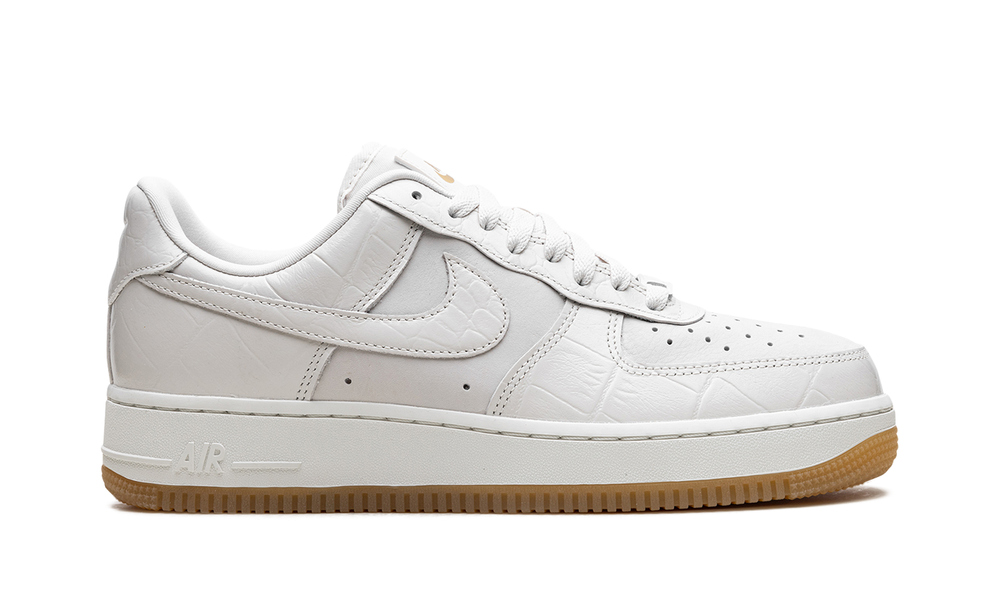The Women’s Nike Air Force 1 Low "Phantom Croc" is a women’s-exclusive colorway of the classic basketball sneaker with patent croc leather on its design. Yet another premium look for the timeless Air Force 1 model, the “Phantom Croc” features a Phantom-colored leather base that’s paired with tonal patent croc leather overlays and Swoosh branding. A Metallic Gold “Nike” logo appears on the tongue tag, while a tonal “Nike Air” logo is debossed on the heel. The Sail-colored rubber midsole and gum rubber outsole complete the look. Phantom Croc