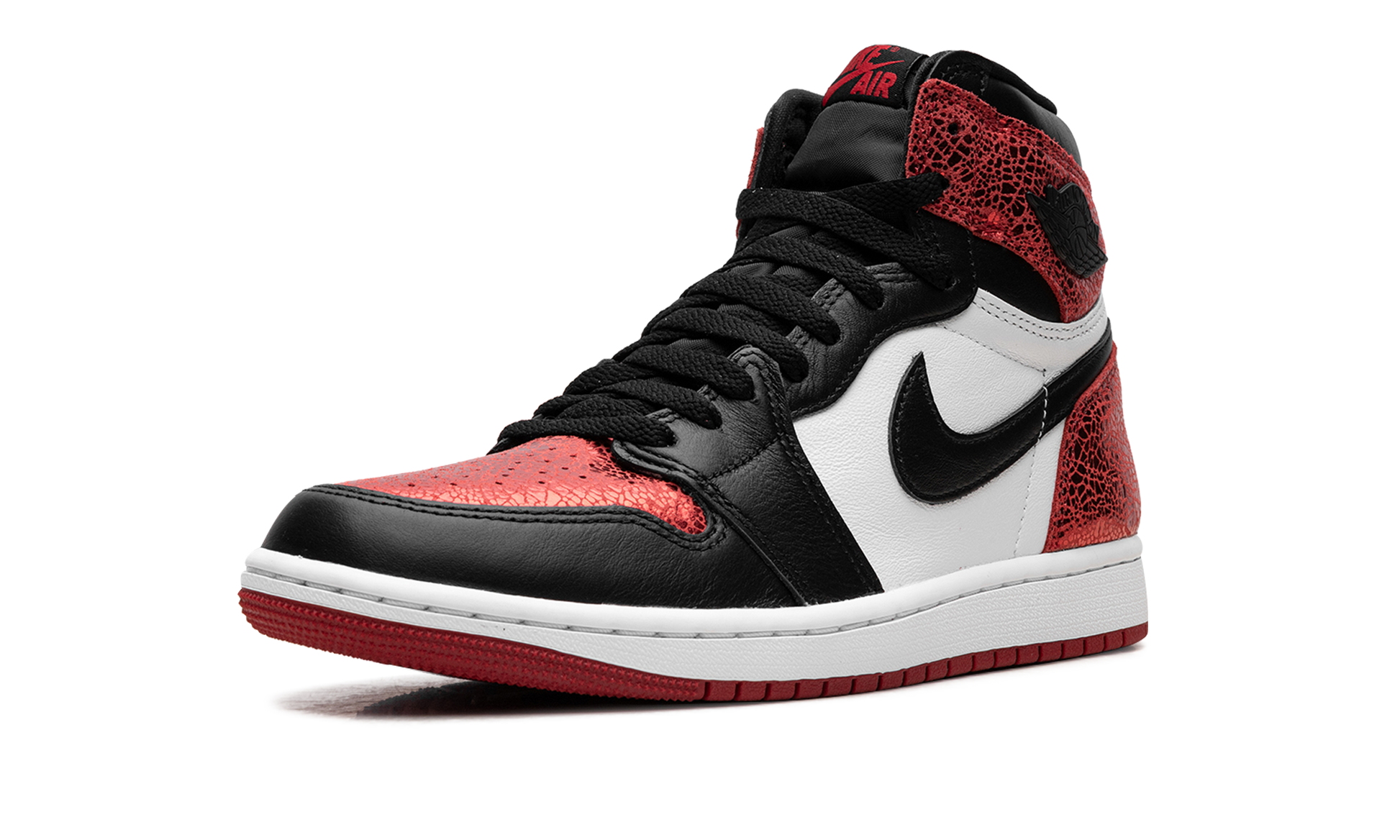 Celebrate 40 years of an icon with the Air Jordan 1 High OG "Ruby," a "Legacy Gem." This release pays homage to the legendary "Bred Toe" color blocking, reimagined with a luxurious twist for her. Featuring cracked Varsity Red leather and a classic silhouette rooted in basketball history, it connects you to the very beginnings of sneaker culture. Own a piece of the Jordan legacy with this radiant edition. Ruby