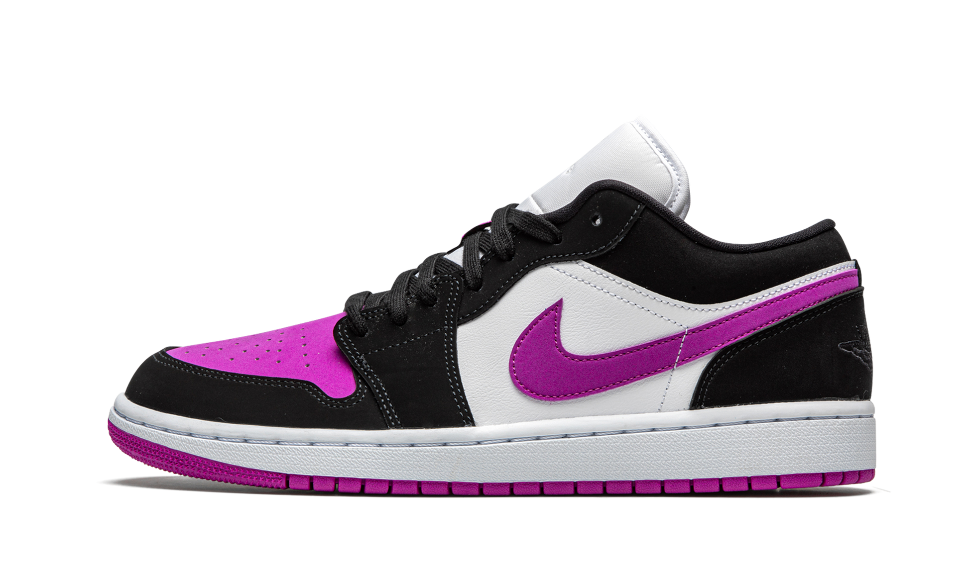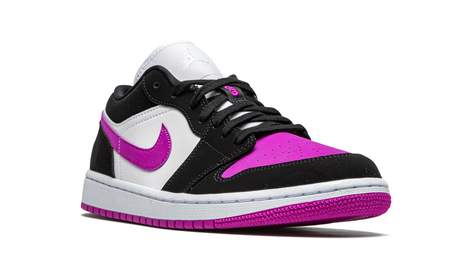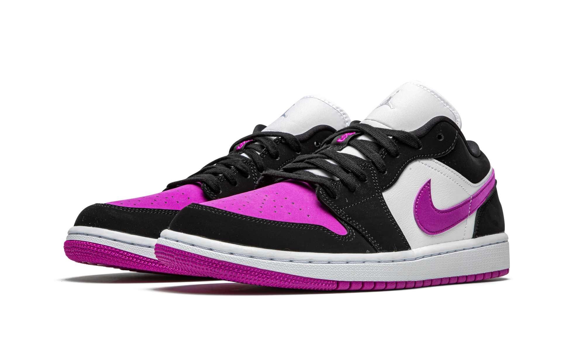 The Women’s Air Jordan 1 Low “Black/Cactus Flower” is an appealing colorway of Michael Jordan’s first signature shoe. The low-top Jordan 1 is as popular as ever in the sneaker community for its classic styling, wearability, and comfort. The “Black/Cactus Flower” checks off all three of those qualities. A bright Cactus Flower, or simply magenta, synthetic nubuck material can be found on the perforated toe. The look is contrasted by black nubuck overlays on the forefoot, eyelets, collar, and heel. A magenta Swoosh appears on either side and a tonal “Wings” logo is embroidered onto the heel. Finishing details include a white embroidered Jumpman on the white nylon tongue, and Cactus Flower “23” embroidery on the lace overlay. Black/ Cactus Flower