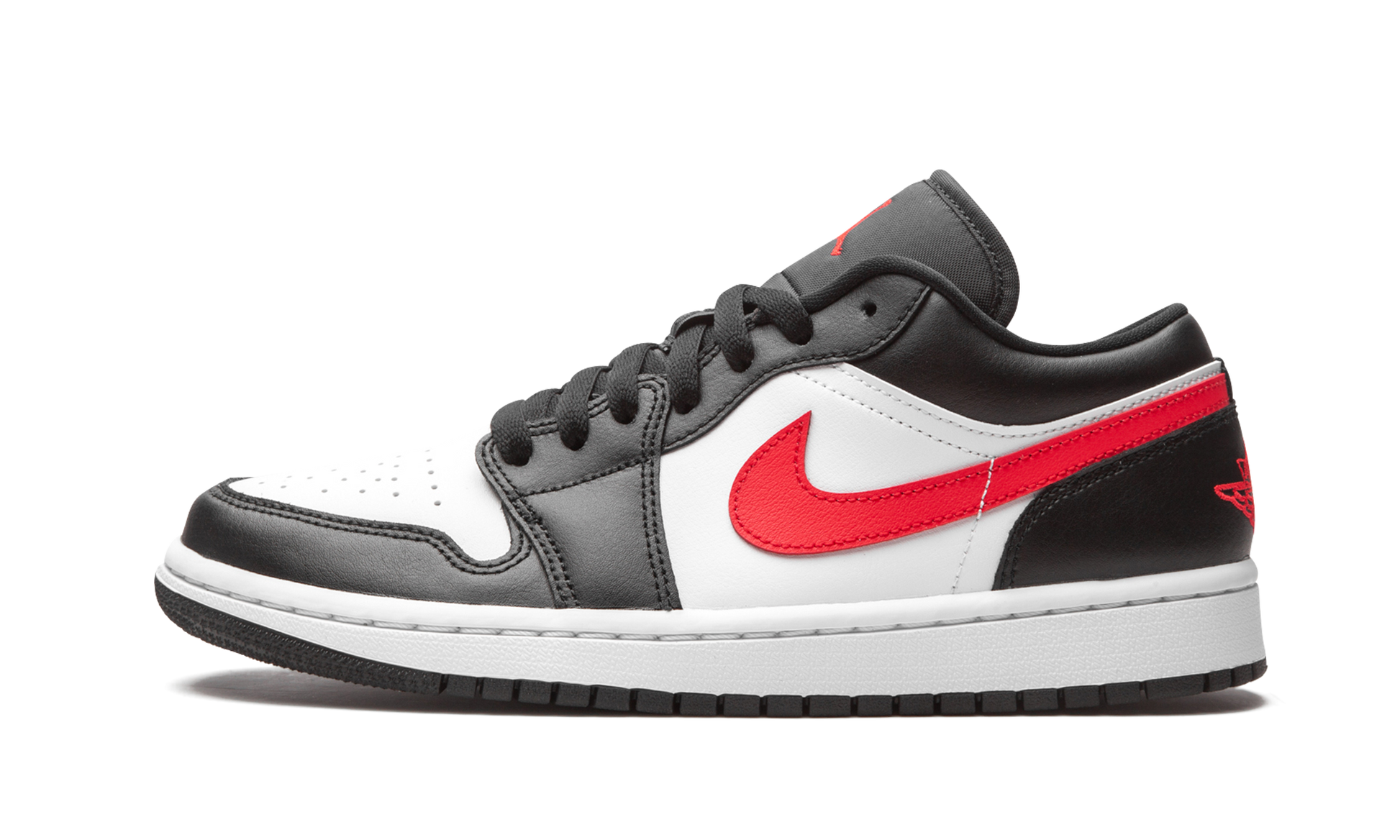 The Women’s Air Jordan 1 Low “Siren Red/Black/White” is yet another highly versatile colorway of Michael Jordan’s first signature shoe fitted in women’s sizing. Like the Air Jordan 1 Mid, the Jordan 1 Low is one of the most playful canvases in Jordan’s collection, the model appearing in high-profile collaborations and everyday lifestyle looks alike. The “Siren Red/Black/White” features a crisp white leather base with contrasting black leather overlays on the forefoot, eyelets, collar, and heel. A vibrant Siren Red leather Swoosh emblem is situated on either side of the shoe. The same bright shade of red appears on the “Wings” embroidery on the black leather heel and on the Jumpman stitched onto the black nylon tongue. Tonal “23” branding can be found on the lace overlay. A white midsole and black outsole put the finishing touches on the design of the Women’s Air Jordan 1 Low “Siren Red/Black/White.” Siren Red / Black / White