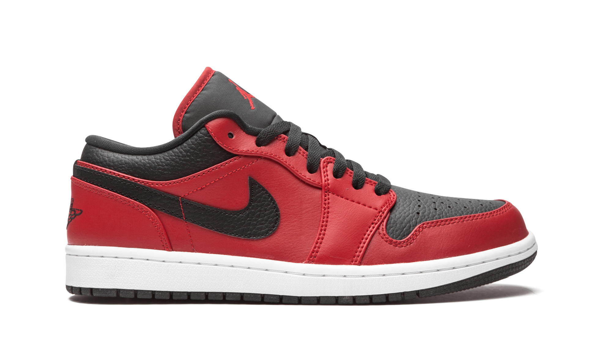The Air Jordan 1 Low “Gym Red” is a Chicago Bulls inspired colorway of Michael Jordan’s iconic first signature shoe in its low-top silhouette. The “Gym Red” shade of red has appeared on countless great Jordan models over the years, with this versatile Jordan 1 Low being one of our favorite looks to date. The colorway makes use of the Bulls’ legendary black and red color scheme by featuring red leather overlays on the mid-panel, eyelets, forefoot, and heel. A black leather Swoosh on either side of the shoe balances out the look. Black leather appears on the perforated toe and around the collar playing up the Bulls inspired theme. A classic black “Wings” logo is stitched onto the heel and a red Jumpman is embroidered on the black nylon tongue. Black shoe laces and red trim on the top of the tongue finish off the look of yet another desirable Air Jordan 1 Low. Gym Red