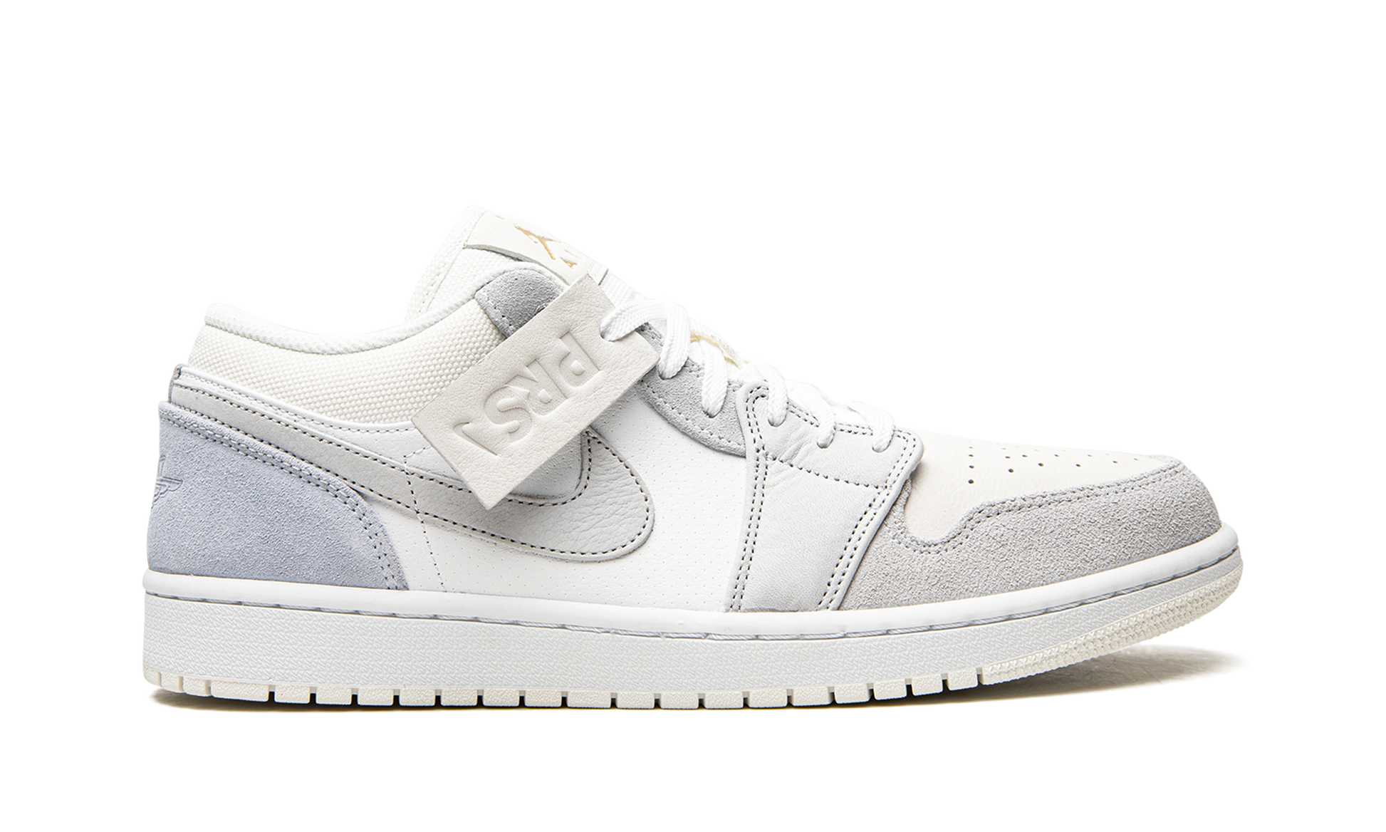 The Air Jordan 1 Low “Paris” is a Europe-exclusive colorway of Michael Jordan’s first signature shoe that was part of February 2020’s “City Pack.” The “Paris” appears on the Air Jordan 1 Low silhouette and is inspired by the landscape of France’s capital city. Details include airy Sky Grey overlays on the toe cap, forefoot, and eyelets. The grey hue appears on the Swoosh detailing found on either side of the shoe. A crisp variety of smooth white leather dots the mid-panel while grey leather appears on the perforated toe. Metallic Gold Jumpman detailing on the nylon tongue tag feeds the model’s elegant styling. Tonal embossed “Wings” branding is located on the back of the shoe on the light blue suede heel overlay. A PRS branded leather hang tag in reference to the French city completes the upscale design of this limited edition Jordan 1 Low. Release date: February 22, 2020. Paris