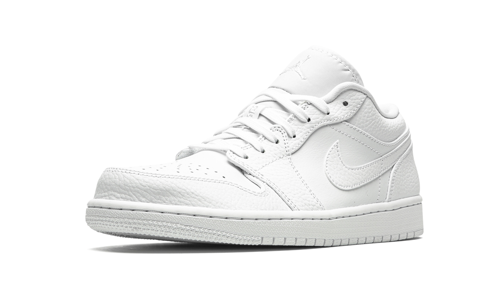 The Air Jordan 1 Low “Triple White” is a super clean monochromatic colorway of Michael Jordan’s first signature shoe in low-top height. This alternate low-top version of the Jordan 1 has become a popular style choice for those seeking a classic, easy-wearing sneaker. Both of those traits describe the “Triple White” colorway. Premium white tumbled leather appears on the perforated toe, forefoot panels, collar, and heel. Tonal Swoosh detailing can be found on the mid-panel and embroidered white “Wings” insignia is located on the heel. Additional design elements include a white nylon tongue with mini Jumpman branding, tonal cotton laces, and a white rubber sole. Release date: Summer 2020. Triple White