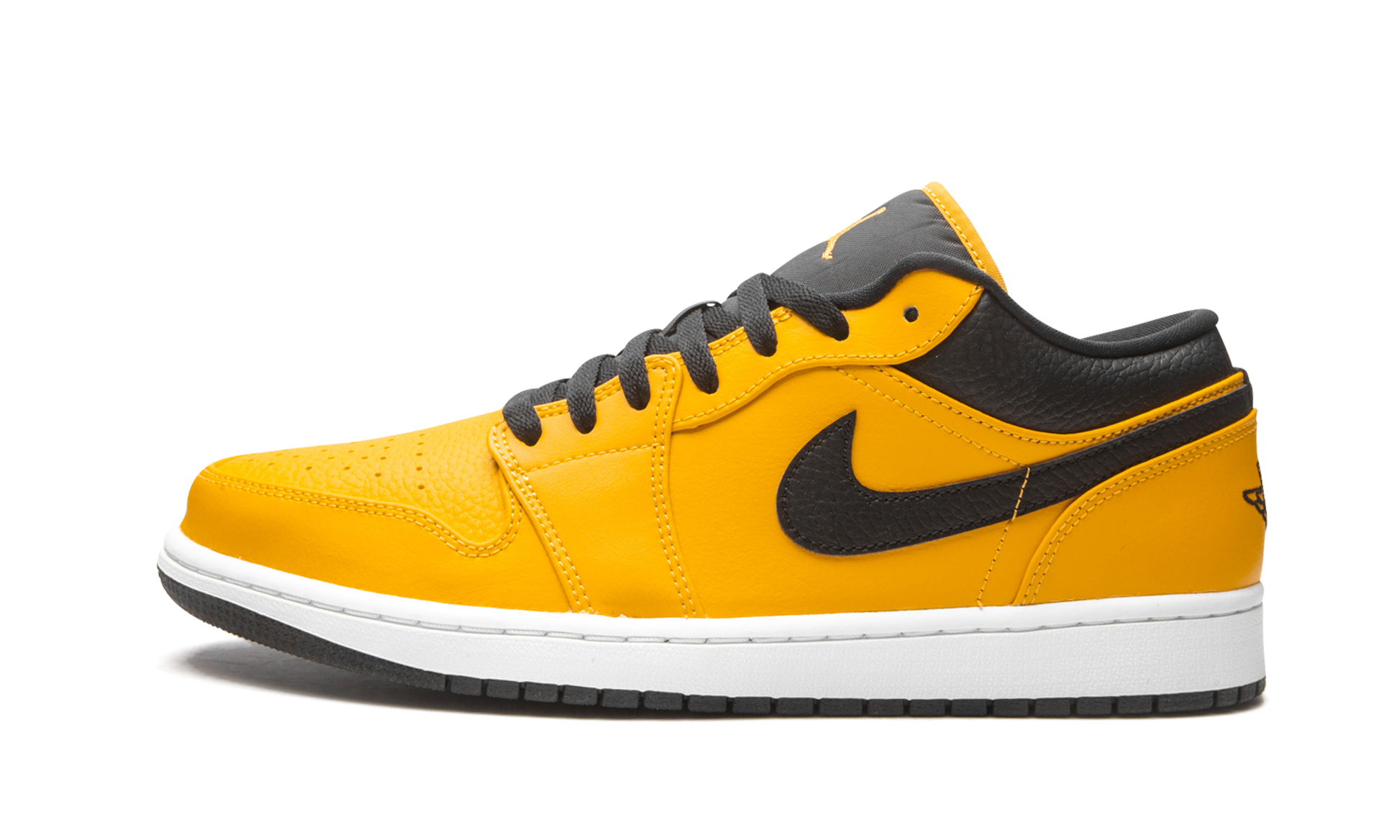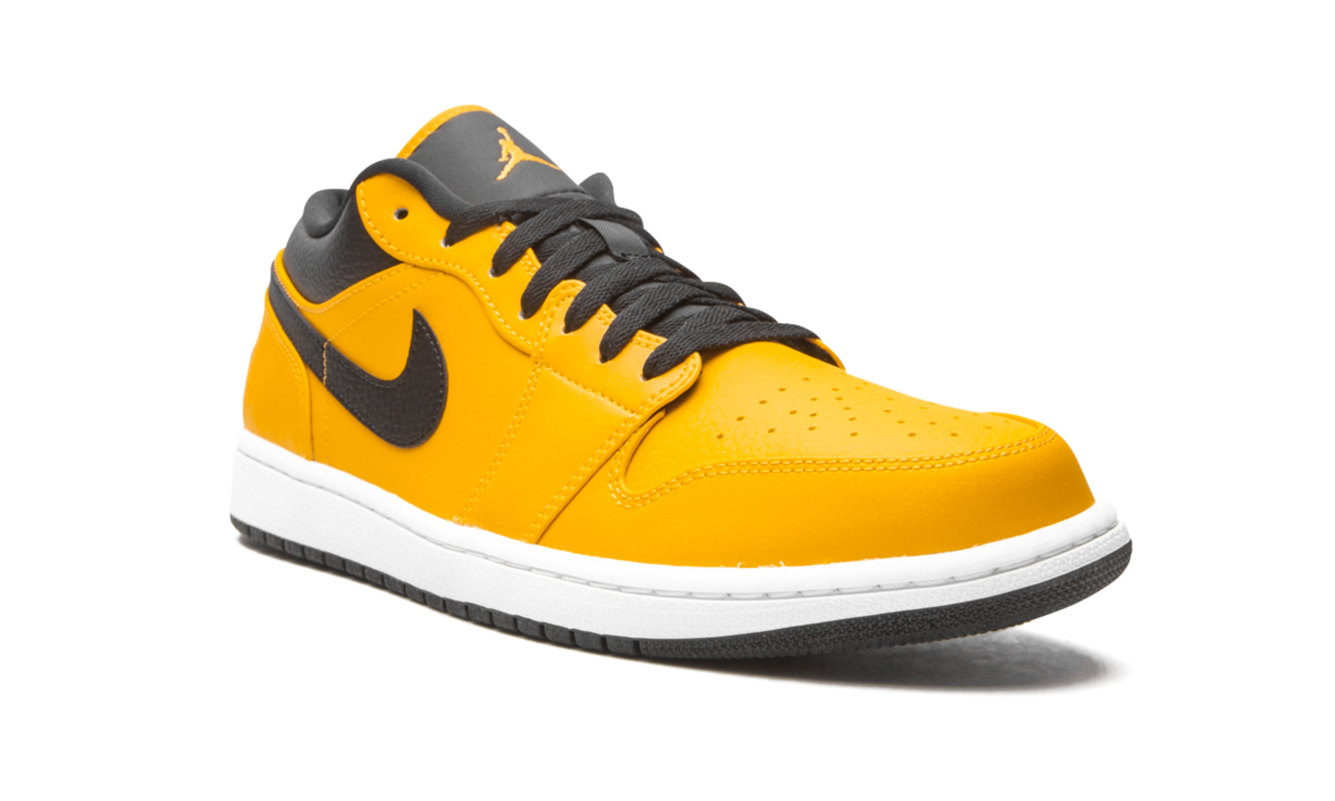 The Air Jordan 1 Low “University Gold/Black” is a standout colorway of Michael Jordan’s first signature shoe in the versatile low-top silhouette. The Jordan 1 Low, along with the high-cut iteration of the shoe, originally released in 1985. Today, the shoe is one of the most popular footwear options on the market, and it's easy to see why on this “University Gold/Black” style. A combination of attention-grabbing University Gold leather can be found on the perforated toe and on the forefoot, mid-panel, and heel. The collegiate inspired shade of yellow also appears on the Jumpman emblem on the black nylon tongue. A black tumbled leather Swoosh on either side of the shoe pairs with the black embroidered “Wings” logo on the heel for a retro look. University Gold / Black