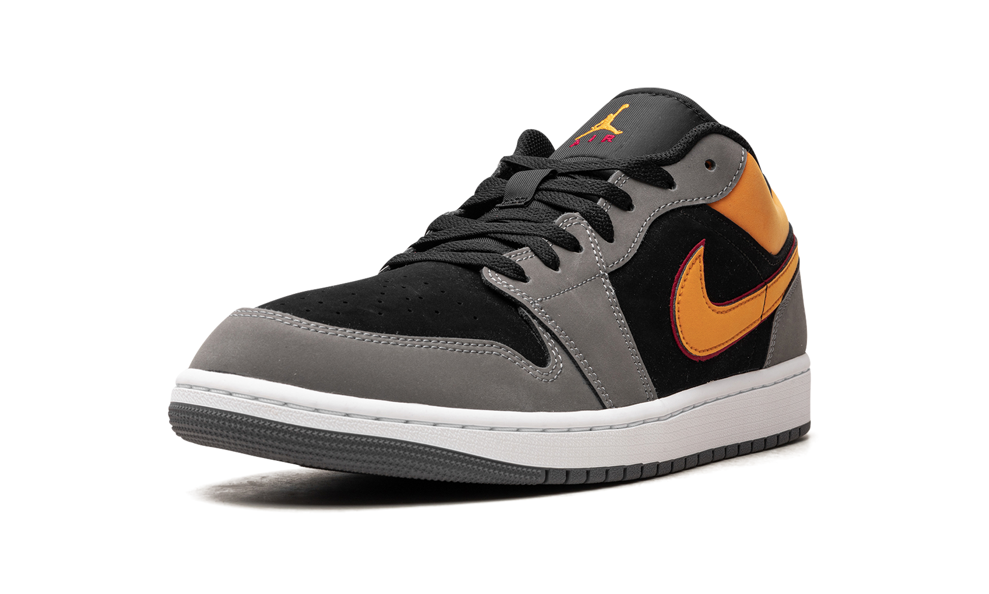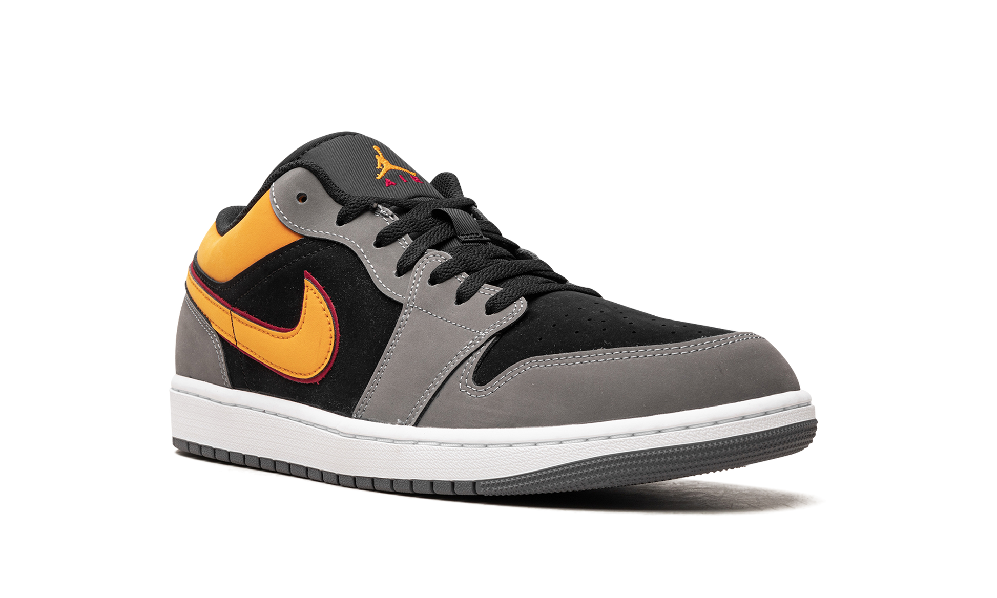 The Air Jordan 1 Low "Vivid Orange" is a colorway of the retro basketball shoe that stands out with eye-catching orange accents. The upper features a black synthetic nubuck base with Light Graphite overlays. A leather Vivid Orange Swoosh is located on either side of the shoe, matching font found on the “Wings” logo on the heel. More Vivid Orange accenting is seen on the collar and Jumpman logo on the tongue. A white rubber midsole and black rubber outsole complete the look. Release date: August 29, 2023 Vivid Orange