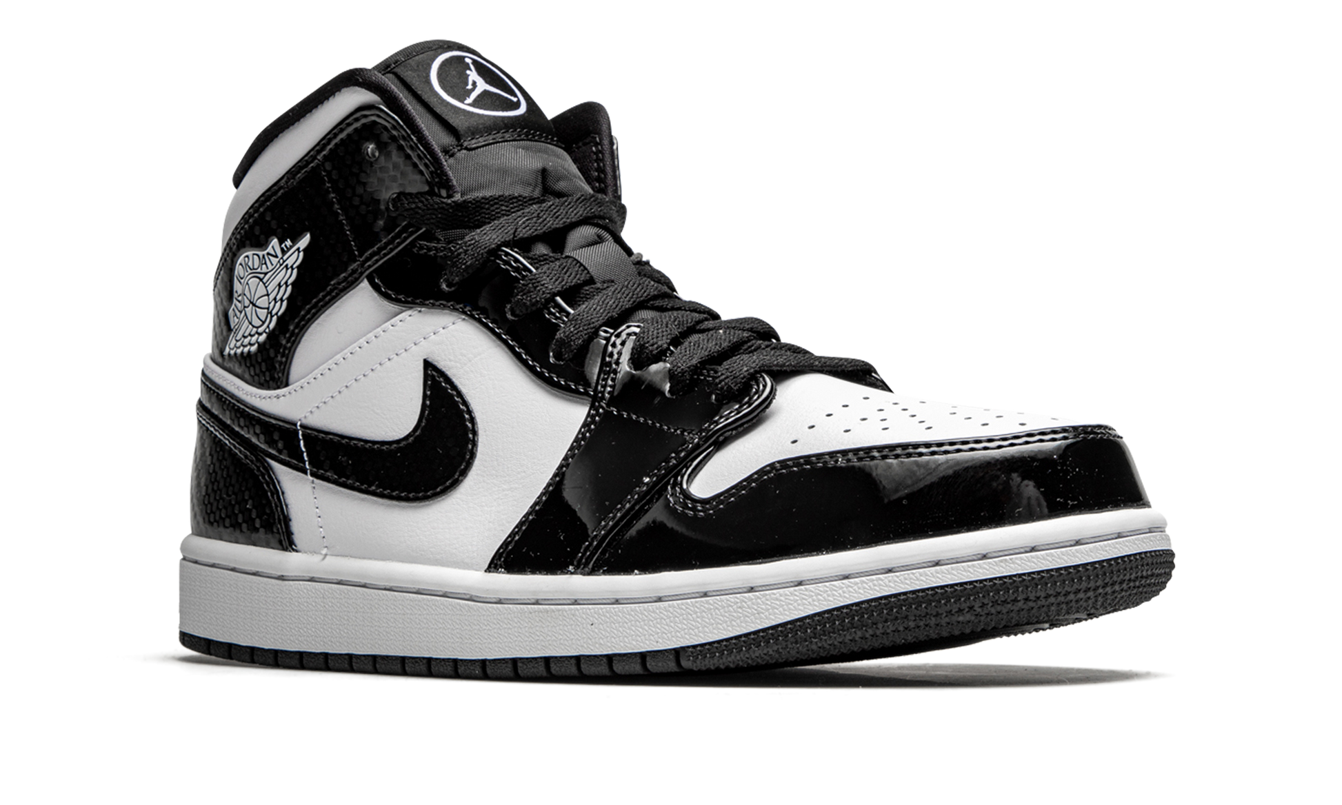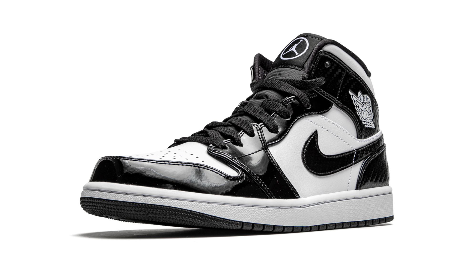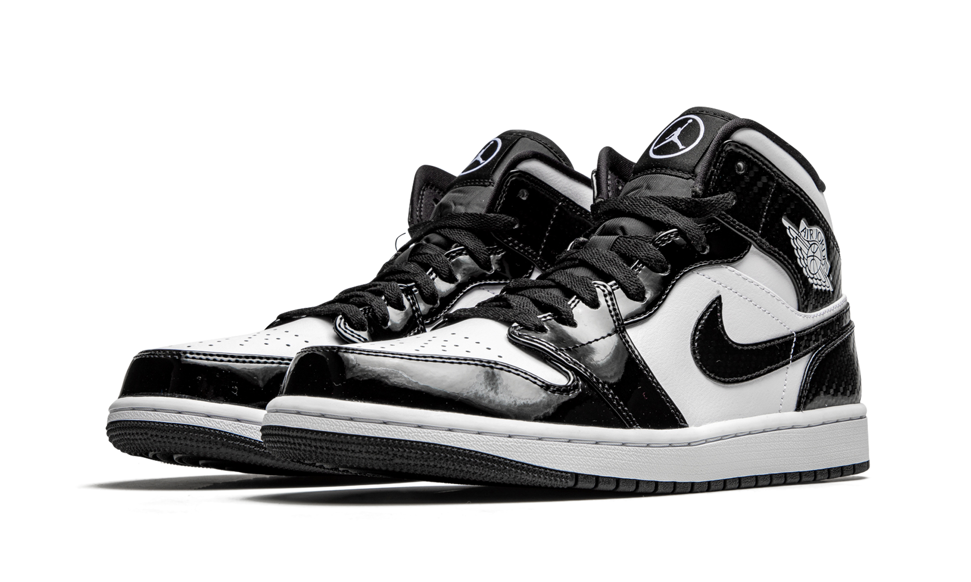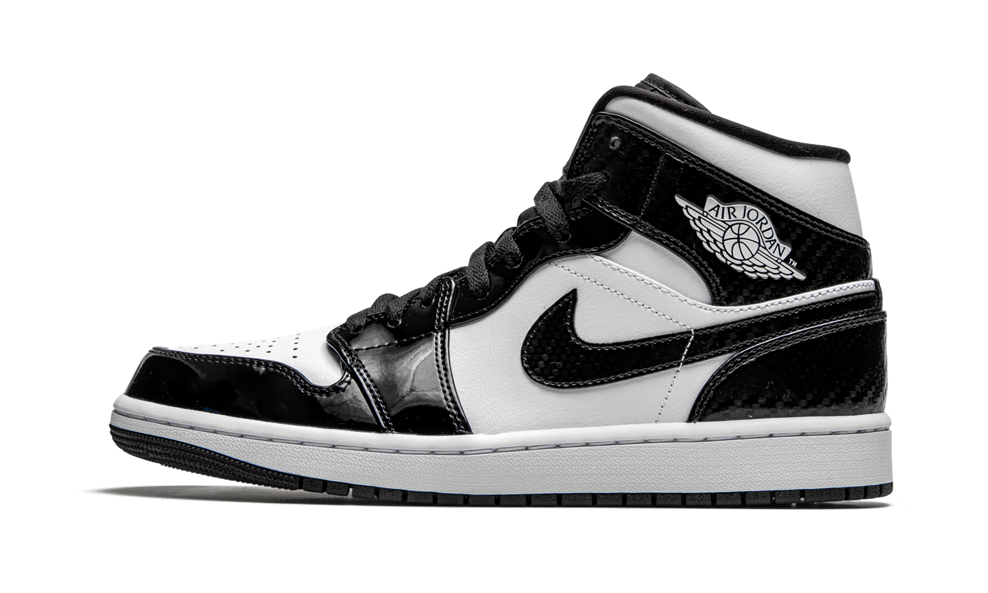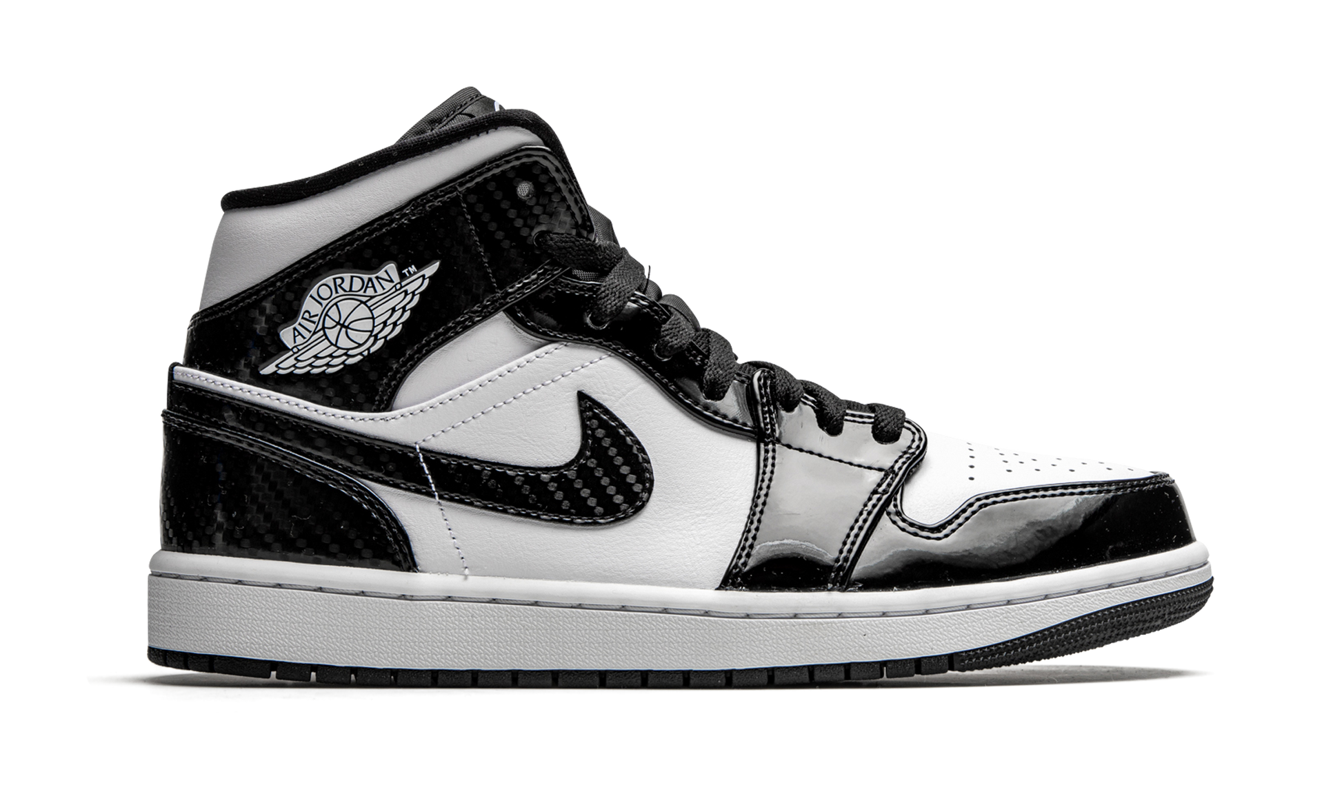 The Air Jordan 1 Mid “All-Star 2021” is a special edition of Michael Jordan’s first signature shoe that is dedicated to the 2021 NBA All-Star Game. The “All-Star 2021” colorway is dressed in a two-tone white-and-black color scheme on the popular mid-top version of the Air Jordan 1. The “All-Star 2021” features a glossy black synthetic leather material across the upper with contrasting matte white panels. The black Swooshes and ankle and heel panels also feature a faux carbon fiber texture for an added dimension to the colorway. A circular “Jumpman” logo appears on the black nylon tongue. Release date: February 2021. All-Star 2021