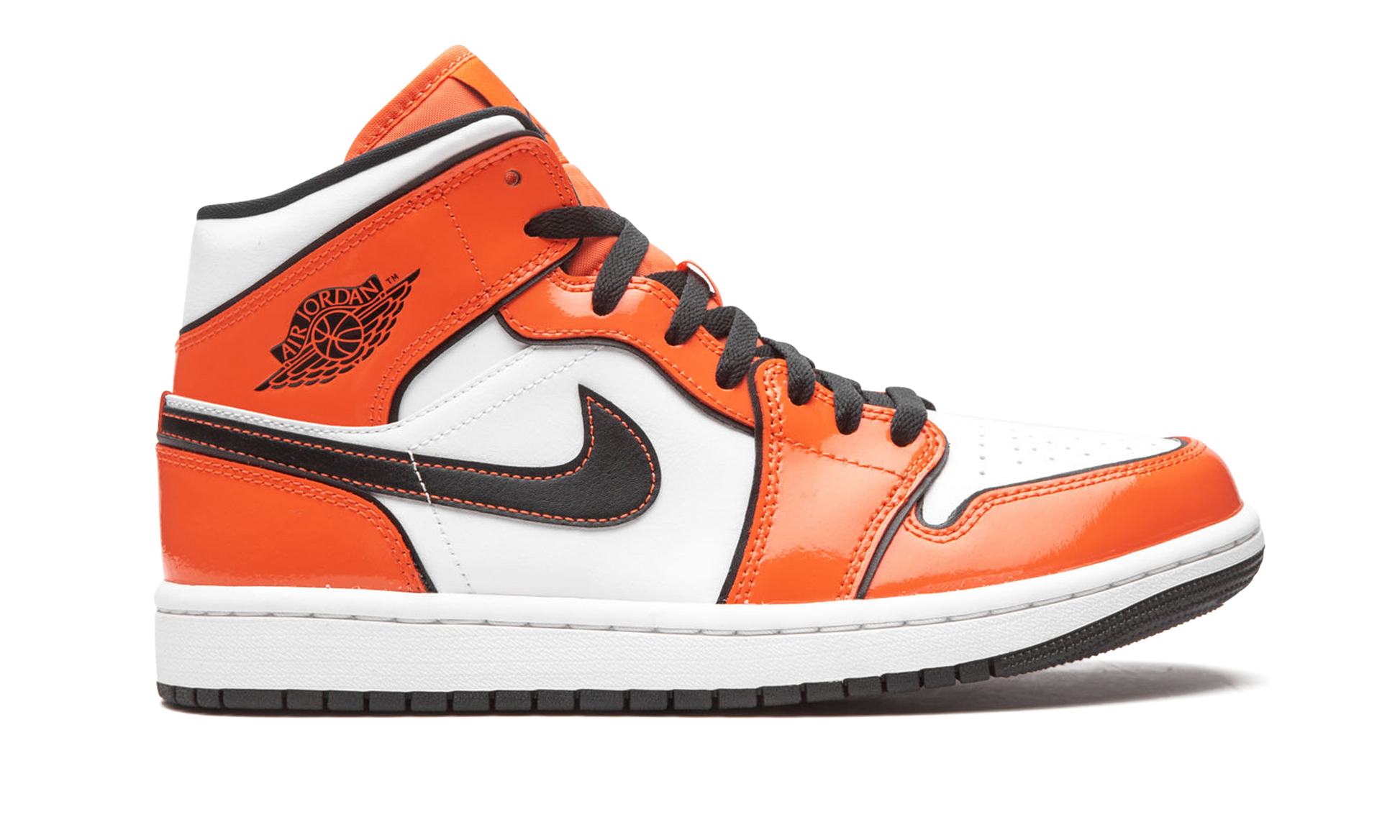 The Air Jordan 1 Mid SE “Turf Orange” is yet another great look for the alternate mid-top version of Michael Jordan’s first signature shoe. The Air Jordan 1 Mid is one of the most popular models in the Jordan line due to its heritage and lifestyle based colorways, like the “Turf Orange.” Glossy Turf Orange leather overlays appear on the forefoot, eyelets, collar, and heel. White leather can be found on the perforated toe, mid-panel, and collar. Jordan Brand places a black patent leather Swoosh with orange contrast stitching on either side of the shoe. A black “Wings” logo appears on the collar and a black Jumpman dots the orange tag stitched onto the tonal nylon tongue. Turf Orange