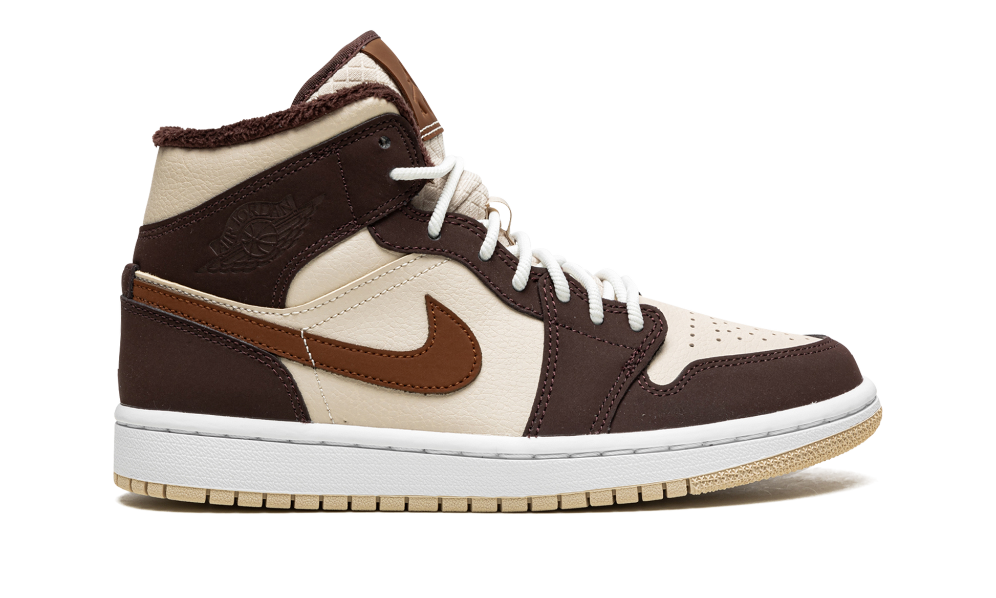 The Women’s Air Jordan 1 Mid “Brown Basalt Fleece” is a women’s-exclusive colorway of the lifestyle shoe with cold weather-inspired design elements. Featuring a fleece interior lining, the “Brown Basalt Fleece” Jordan 1 Mid is a standout option for cold weather. The shoe’s upper is constructed in cream-colored leather, with the material appearing on the perforated toe, mid-panel, and collar. Dark Brown durabuck overlays and a light brown Swoosh contrast the neutral-colored base. The “Brown Basalt Fleece” opts for a waffle-like tongue design and rope laces. A brown patch with debossed Jumpman and “Air” branding gives the shoe a decidedly upscale appearance. Release date: March 30, 2022 Brown Basalt Fleece