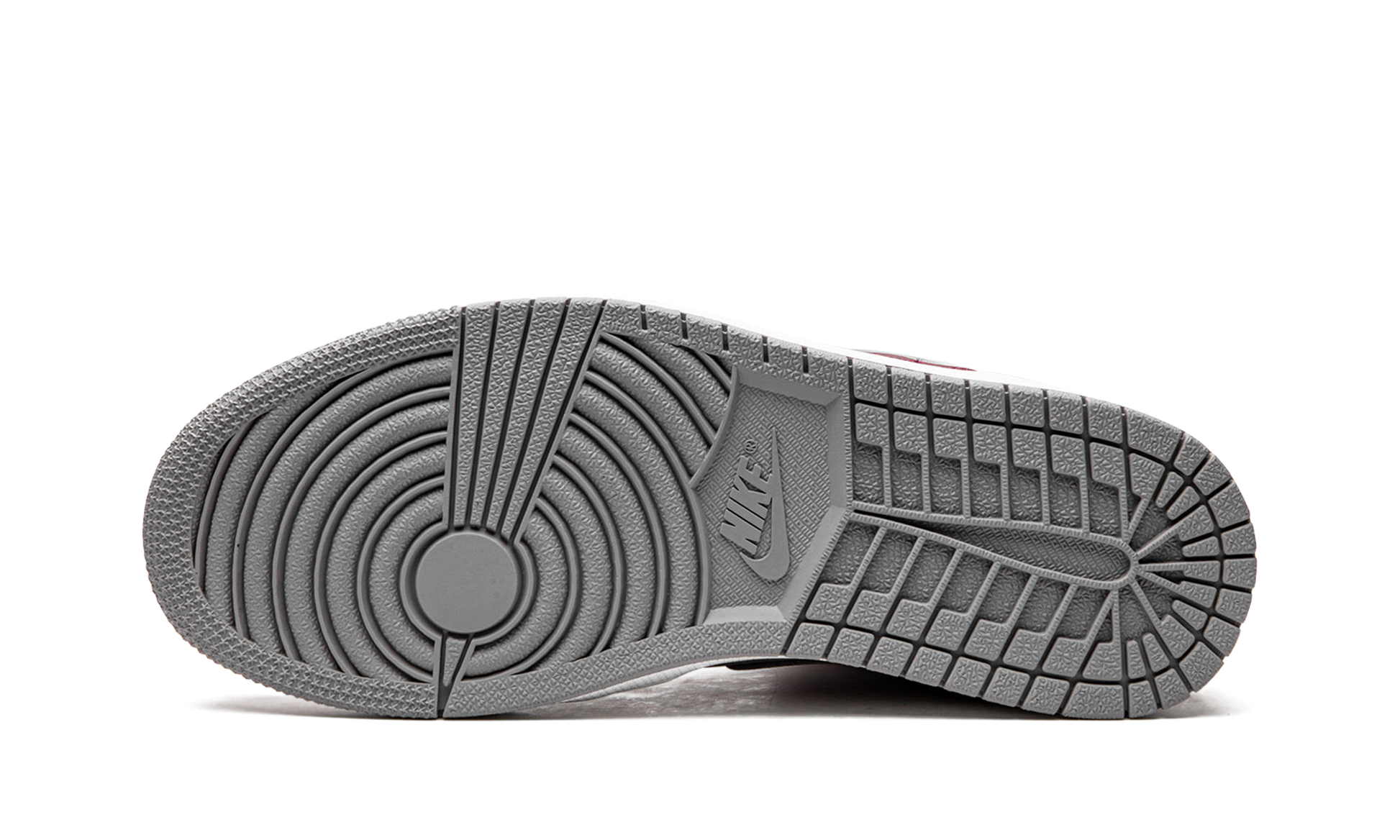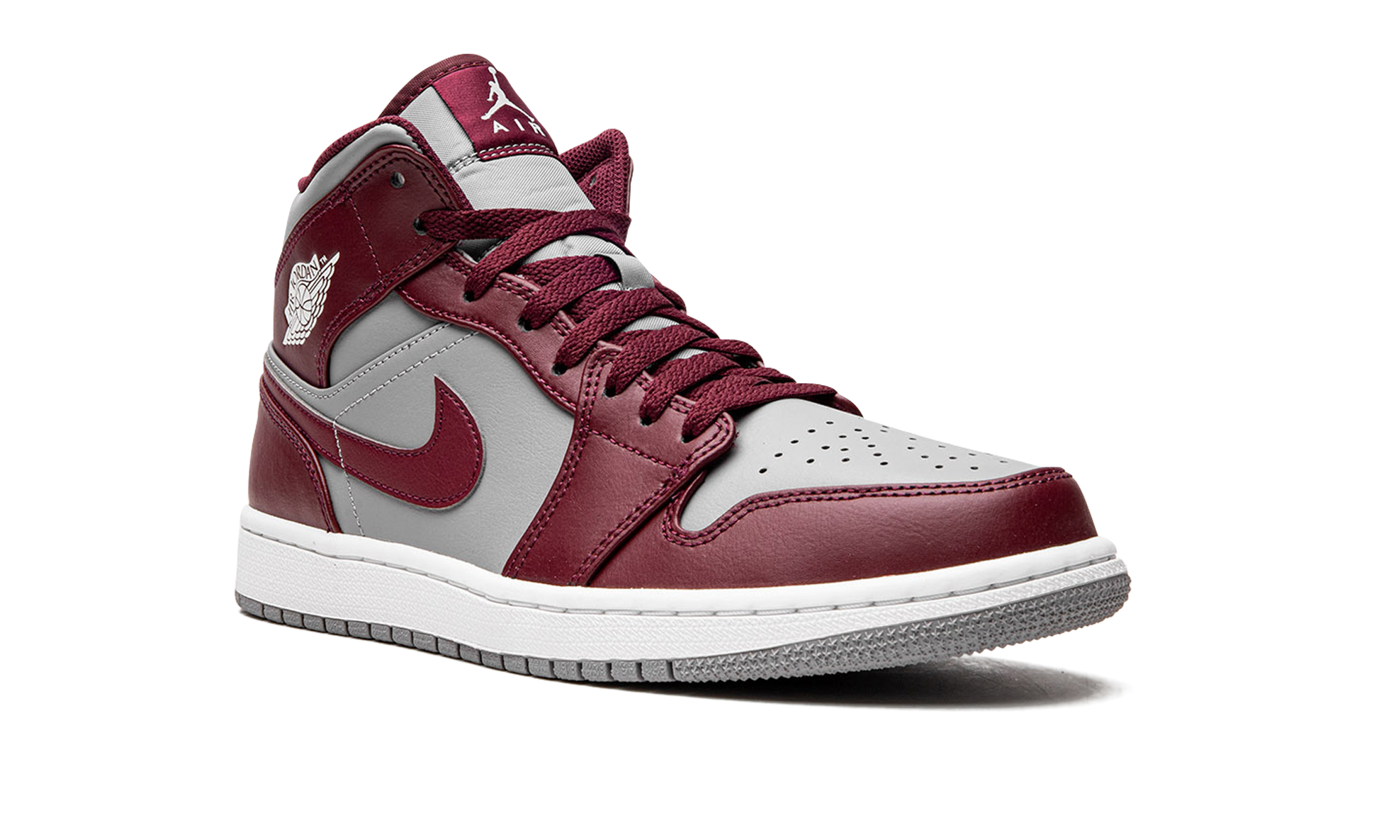 The Air Jordan 1 Mid “Team Red” is a maroon and grey colorway of the lifestyle shoe that was released in 2022. The classic, two-tone color block features a grey leather base with Team Red leather overlays and Swoosh branding. A white “Wings” logo can be found on the collar and white Jumpman and “Air” detailing appears on the Team Red tongue tag on the grey nylon tongue. A white rubber midsole and grey outsole complete the look. Team Red