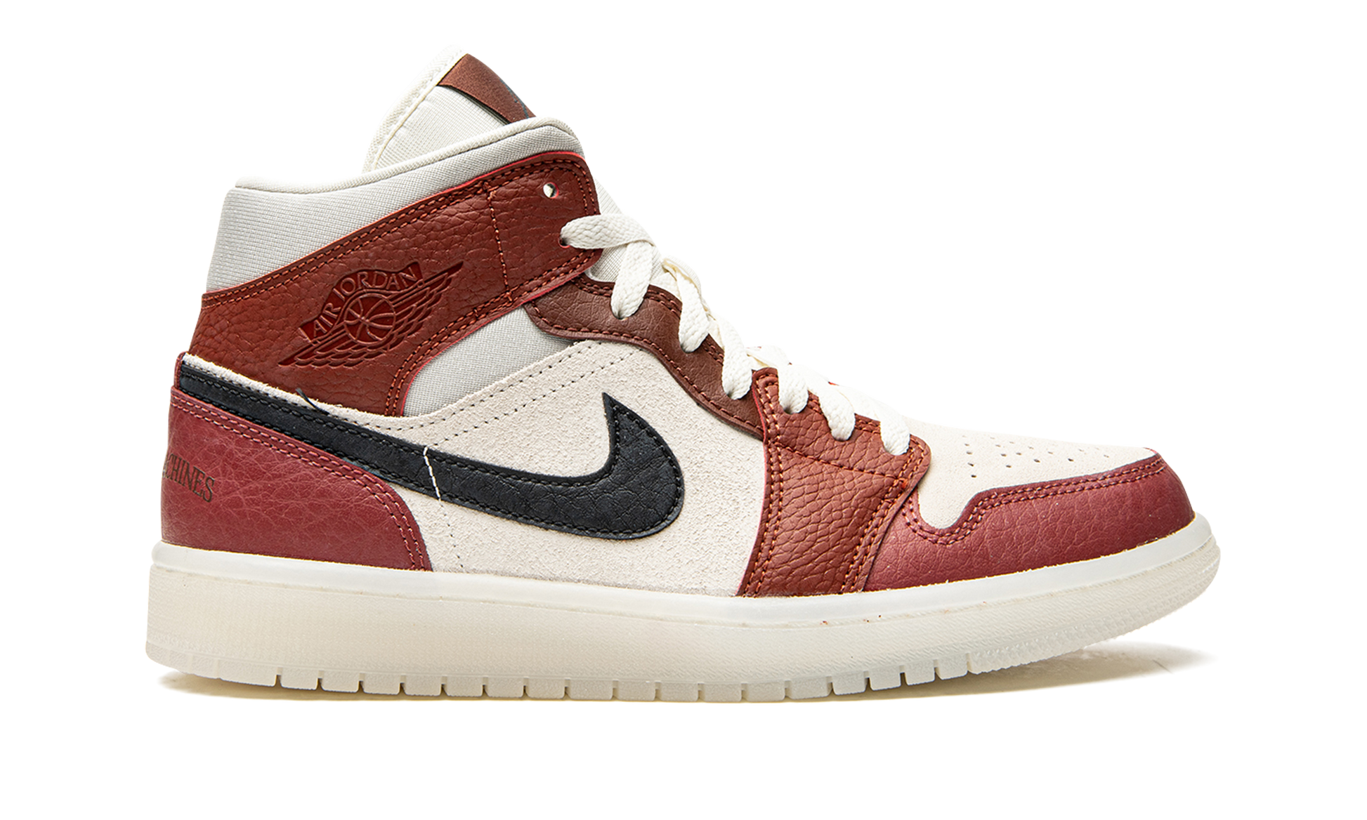 The Women’s Air Jordan 1 Mid “Anti-Gravity Machines” is a women’s-exclusive, mismatched colorway of Michael Jordan’s first signature shoe that makes a tongue-in-cheek reference to Jordan Brand’s “Air Jordan” line. The “Anti-Gravity Machines” suggests a casual, lifestyle design with both its clever nickname and colorway, which features various shades of Hyper Royal leather panels on the left shoe and Bordeaux-esque leather panels on the right shoe. Both the left and right shoe are constructed with a Sail leather base that allows for their respective overlays to attract attention. A black tumbled leather Swoosh is found on both shoes. Other details include “Wings” branding on the collar and the phrase “Anti-Gravity Machines” on the heel. Classic Jumpman and “Air” detailing appears on the blue and red tongue tags on the left and right shoe, respectively. Anti Gravity Machines
