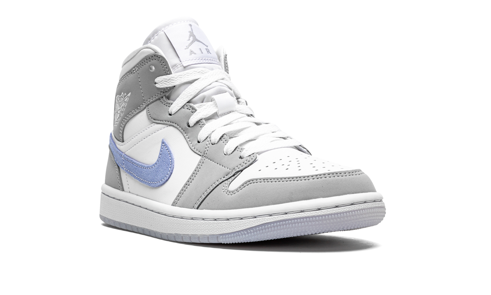 The Women’s Air Jordan 1 Mid “Wolf Grey/Aluminum” is a women’s exclusive look for Michael Jordan’s iconic first signature shoe. Interestingly, the “Wolf Grey/Aluminum” colorway is reminiscent of the white-and-grey color block of the Dior x Air Jordan 1 from 2020, one of the most coveted Air Jordan releases of all time. Like Dior’s high fashion-inflicted take on the retro basketball shoe, the “Wolf Grey/Aluminum” features white leather on the perforated toe, mid-panel, and collar. Contrasting grey leather detailing highlights the look of the forefoot, eyelets, collar, and heel. Unlike the Dior x Air Jordan 1, the “Wolf Grey/Aluminum” is constructed with a blue suede Swoosh on either side. A white “Wings” graphic adorns the collar and a low-contrast, grey Jumpman logo sits above “Air” branding on the white nylon tongue. Grey Blue
