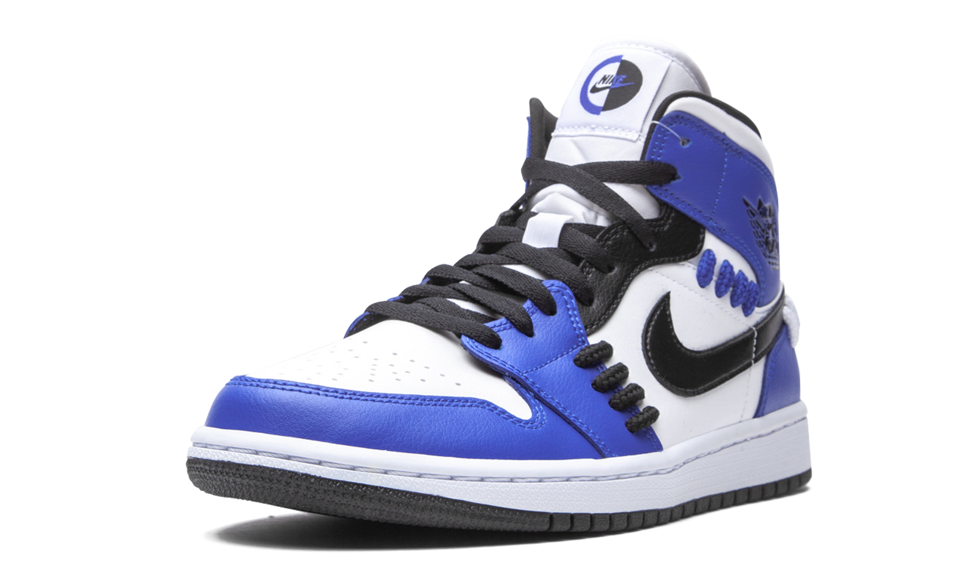 The Women’s Air Jordan 1 Mid “Sisterhood” is inspired by the bond between women in and outside of the sneaker community with unique details previously unseen on the model. The Jordan 1 Mid seen here appears in a classic color block that can be worn on a daily basis. Game Royal leather overlays contrast the white leather base of the upper. A black leather Swoosh on the mid-panel and black leather detailing around the eyelets adds balance to the appearance. While those design elements are fairly common for the Jordan 1, the thick cotton rope detailing on the forefoot, mid-panel, and heel are new for this colorway. The same holds true for the split design of the “Nike Air” branding found on the white nylon tongue tag. Release date: October 15, 2020. Sisterhood - Game Royal