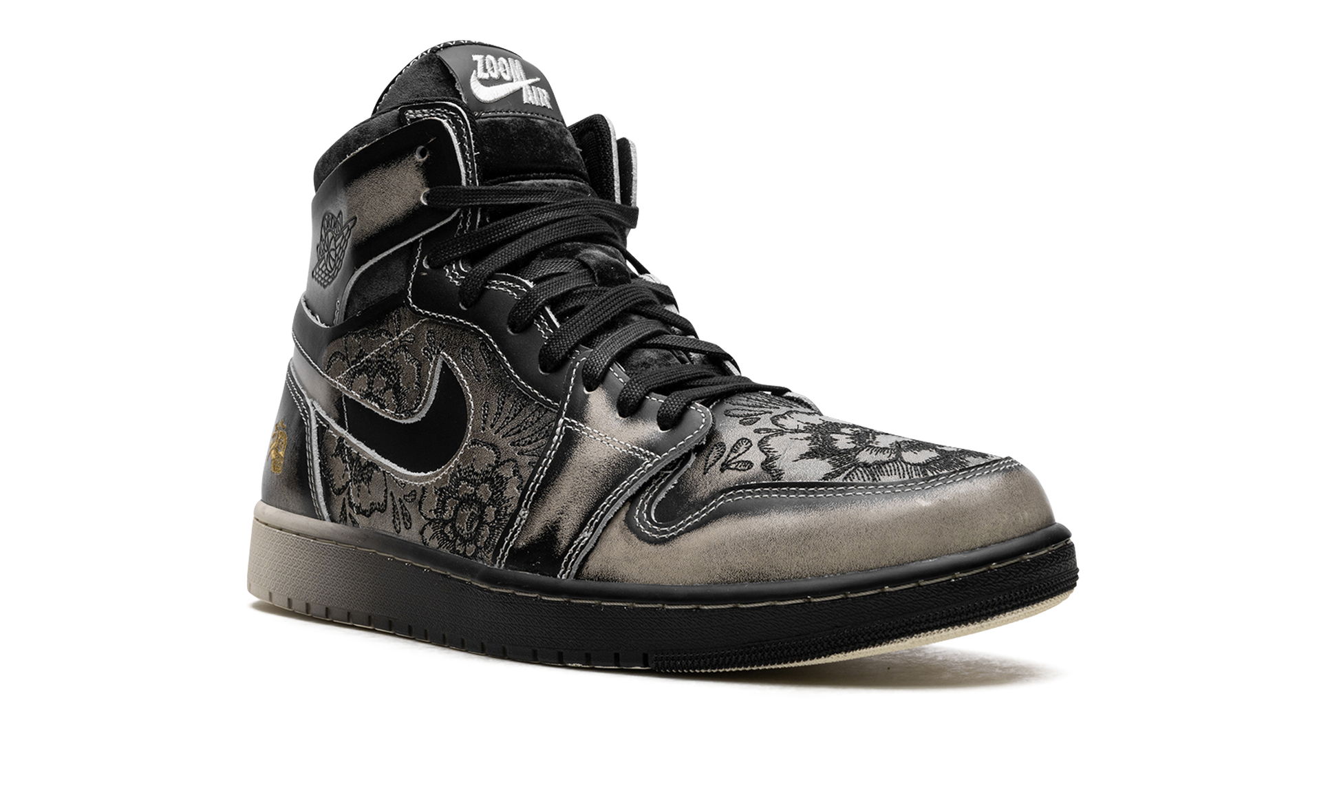 The Air Jordan 1 Zoom CMFT 2 "Dia De Los Muertos" is a colorway of the casual sneaker inspired by the traditional Mexican holiday. Diá de Los Muertos is an event that is commonly held in Mexico that reunites the living and the dead through ofrendas, which are offerings created by families for their departed family members. As for the Jordan 1 Zoom Comfort 2 “Dia De Los Muertos,” the colorway has a unique, aged-looking appearance with ornate floral details throughout its design. Various “Day of the Dead” inspired details are seen on the shoe while a gold embroidered skull with a headdress is found on the heel. Underfoot, the Formula-23 foam and Zoom Air cushioned midsole fades from black to pale ivory on the heel to the toe. Release date: October 21, 2023 Dia De Los Muertos