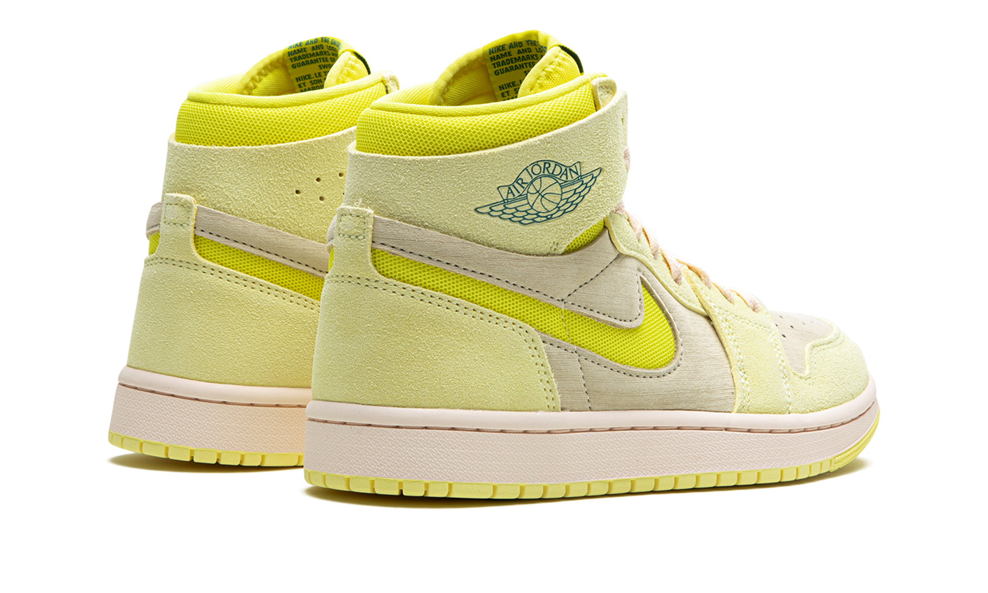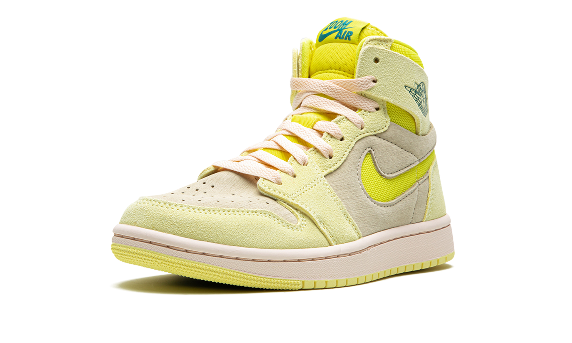 The Women’s Air Jordan 1 Zoom CMFT 2 "Citron Tint" is a women’s-exclusive colorway of the second version of the updated Jordan 1. The Jordan 1 Zoom Comfort 2 is the second edition of the alternate Jordan 1 model that debuted as a lifestyle take on the classic silhouette. On the “Citron Tint,” the shoe features a Muslin-colored textile base with Citron Tint-colored textile overlays. The yellow hue is also found on the cut-out Swoosh on the side and on the mesh collar. A black outline “Wings” logo appears on the collar. “Zoom Air” branding replaces the Jordan 1’s original “Nike Air” detailing on the tongue tag. The Jordan 1 Zoom Comfort 2, like the original Zoom Comfort silhouette, features Nike’s Zoom Air cushioning technology in the forefoot. Citron Tint