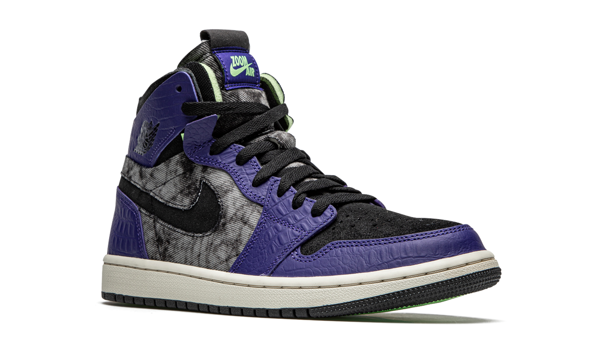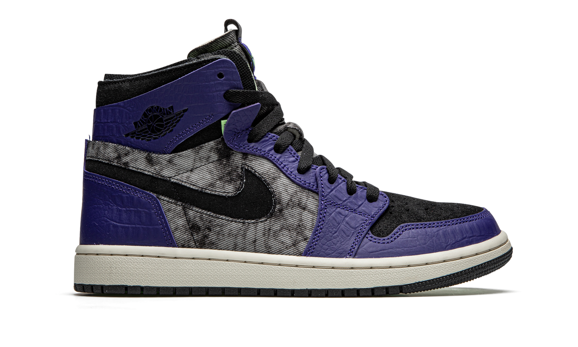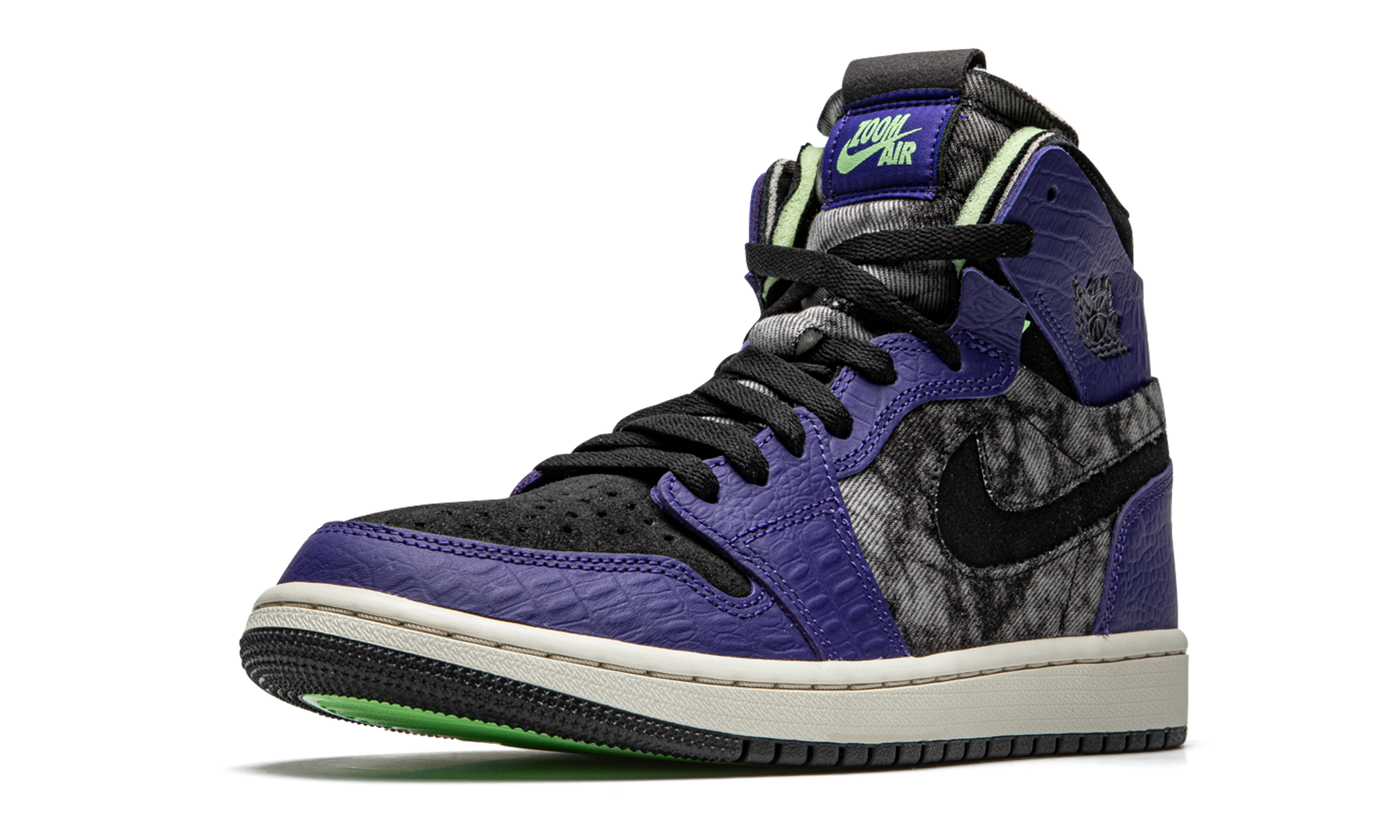 The Air Jordan 1 Zoom Comfort "Bayou Boys" is a special, New Orleans-inspired colorway of the lifestyle silhouette in honor of Jordan Brand athlete Zion Williamson. Multiple materials—textile, shaggy suede, crocodile-printed leather—make up the textural upper in shades of murky grey, black, and purple. The Jordan design team also inserts special details from the New Orleans Pelicans player, including "Bayou Boys" text on the inner tongue and a special printed insole. The Air Jordan 1 Zoom Comfort design comes complete with a Zoom Air cushioning midsole and multicolor rubber traction outsole. Bayou Boys