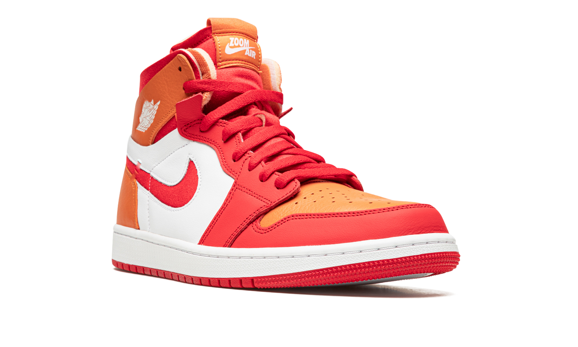 The Women’s Air Jordan 1 High Zoom CMFT “Fire Red/Hot Curry” is a hot and spicy colorway of the alternate version of the iconic Jordan 1. The Air Jordan 1 Zoom Comfort is a modern take on the classic basketball and lifestyle shoe with design updates that include a new Zoom Air cushioned midsole and an ankle collar with even more padding than that of the Air Jordan 1 High OG model. The design features a fiery look, with Hot Curry-colored leather appearing on the perforated toe, collar, and heel. Bold Fire Red leather is found on the toe cap, forefoot, eyelets, and collar underlay. The blazing red hue is also found on the Swoosh logo on either side. A white “Wings” logo appears on the collar. Release date: July 14, 2022 Red Hot Curry