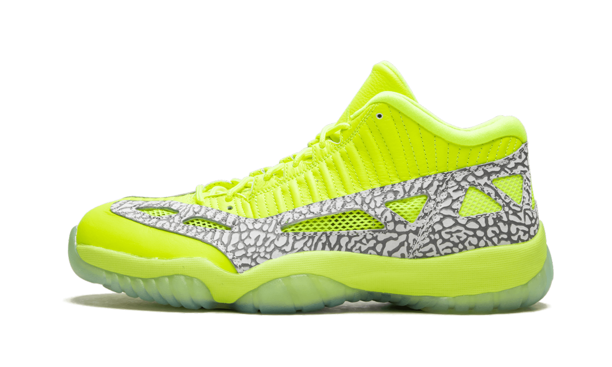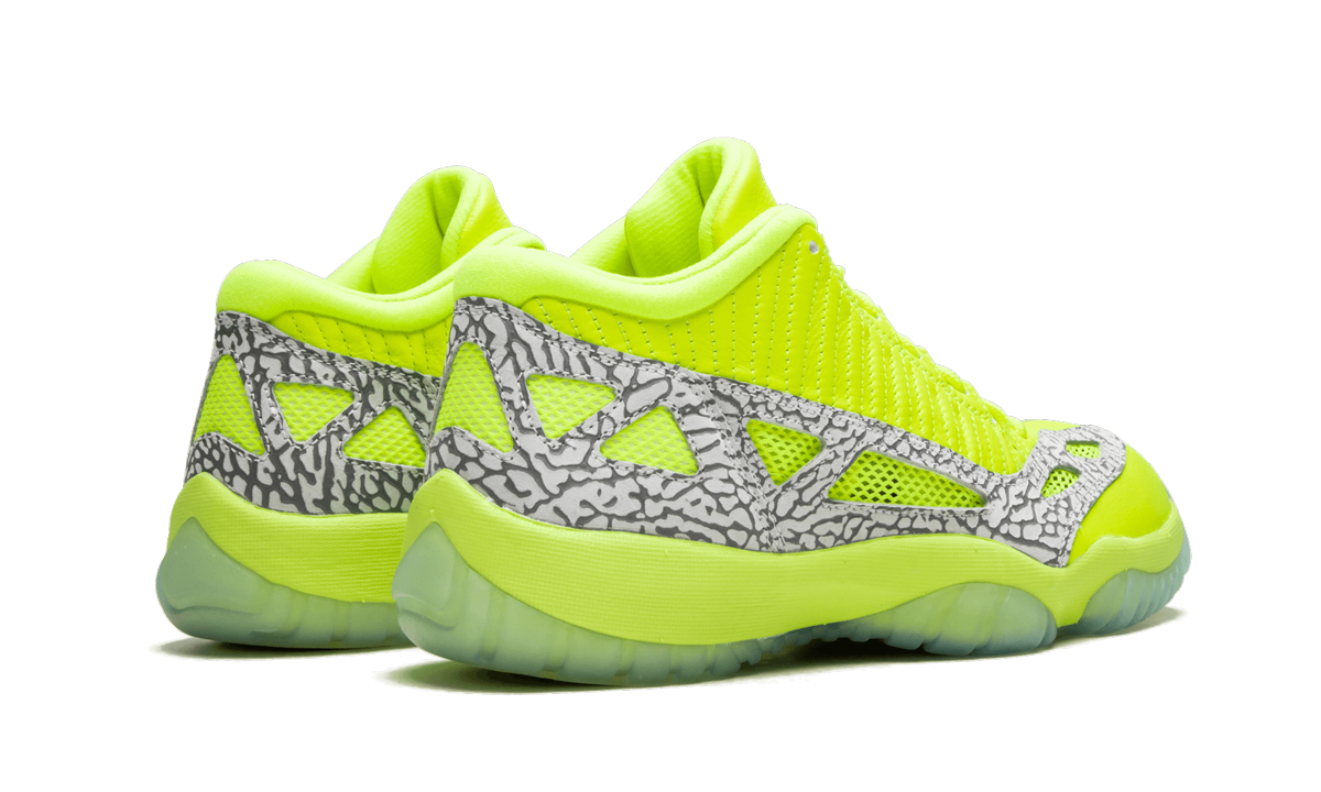 The Air Jordan 11 Low IE “Volt” is the most eye-catching colorway of the low-top Air Jordan 11 model ever released. The unique “alternate” edition of the Air Jordan 11 from 1996 receives a vibrant Volt hue across the mesh and leather of the upper as well as the midsole, while the elephant print paneling stays with a more traditional grey shade. A translucent outsole finishes off the bold look. Released within a pack of three bright colors during summer 2018, the Air Jordan 11 Low IE “Volt” is the most memorable member of the set.
