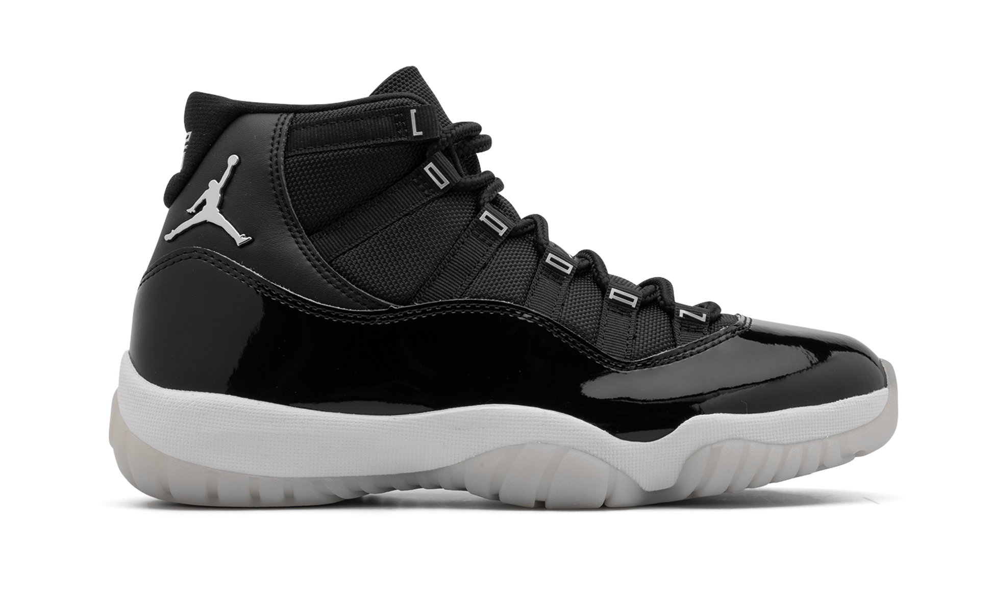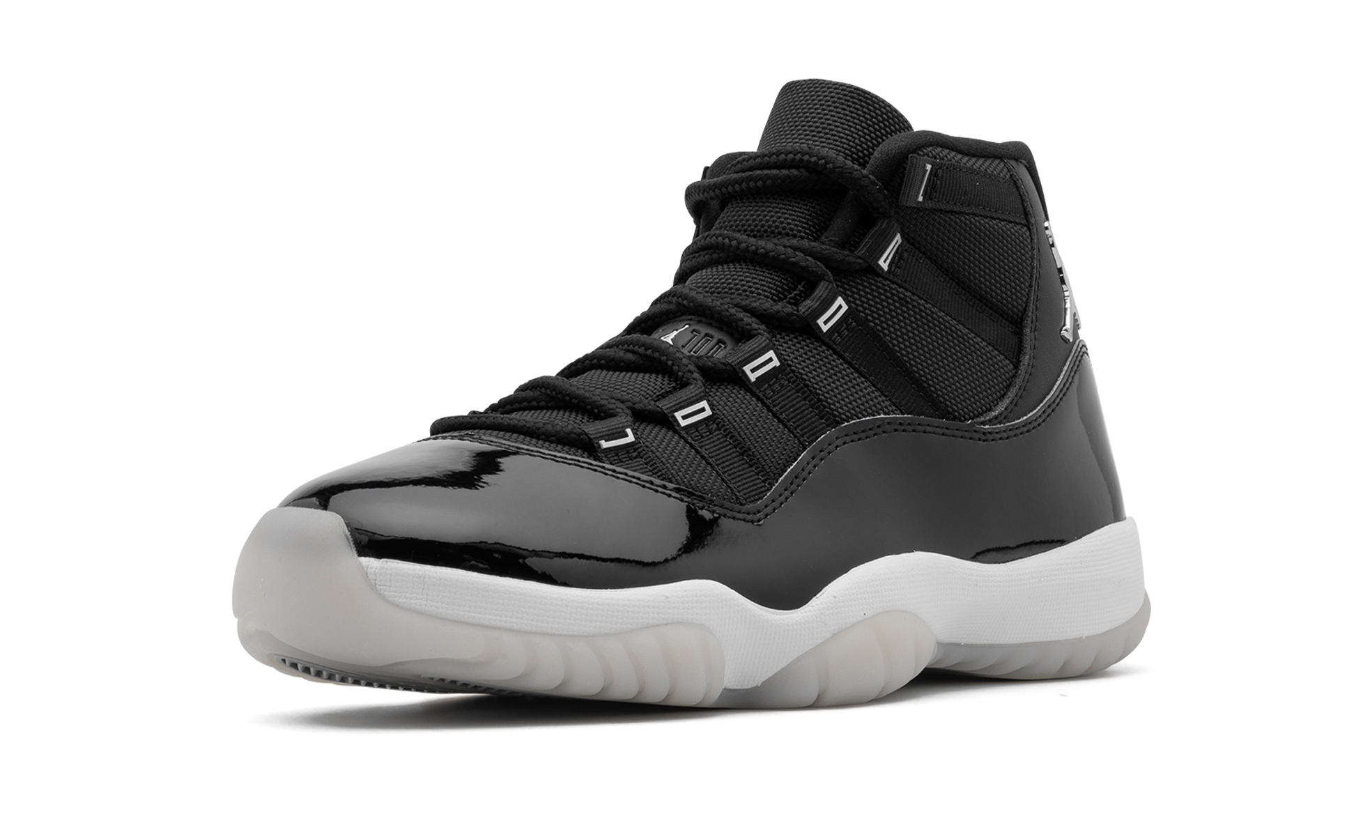 The Women’s Air Jordan 11 “Jubilee” is the women’s sizing of the colorway that honors the 25th anniversary of Michael Jordan’s beloved eleventh signature shoe. A Winter 2020 release, the “Jubilee” is inspired by an original sketch by Tinker Hatfield during his designing of the Jordan 11 in the ‘90s. Both the “Concord” and “Space Jam” colorways also influence the design, as the shoe’s black and white appearance is reminiscent of those original makeups. The word “Jordan” is spelled out in Metallic Silver lettering along the side of the eyelets in reference to Hatfield’s original sketch. A silver Jumpman emblem appears in the same premium finish on the collar. Shiny black patent leather paneling above the white midsole is a nod to the “Concord,” “Space Jam,” and “Bred” colorways. Release date: December 12, 2020. Jubilee / 25th Anniversary