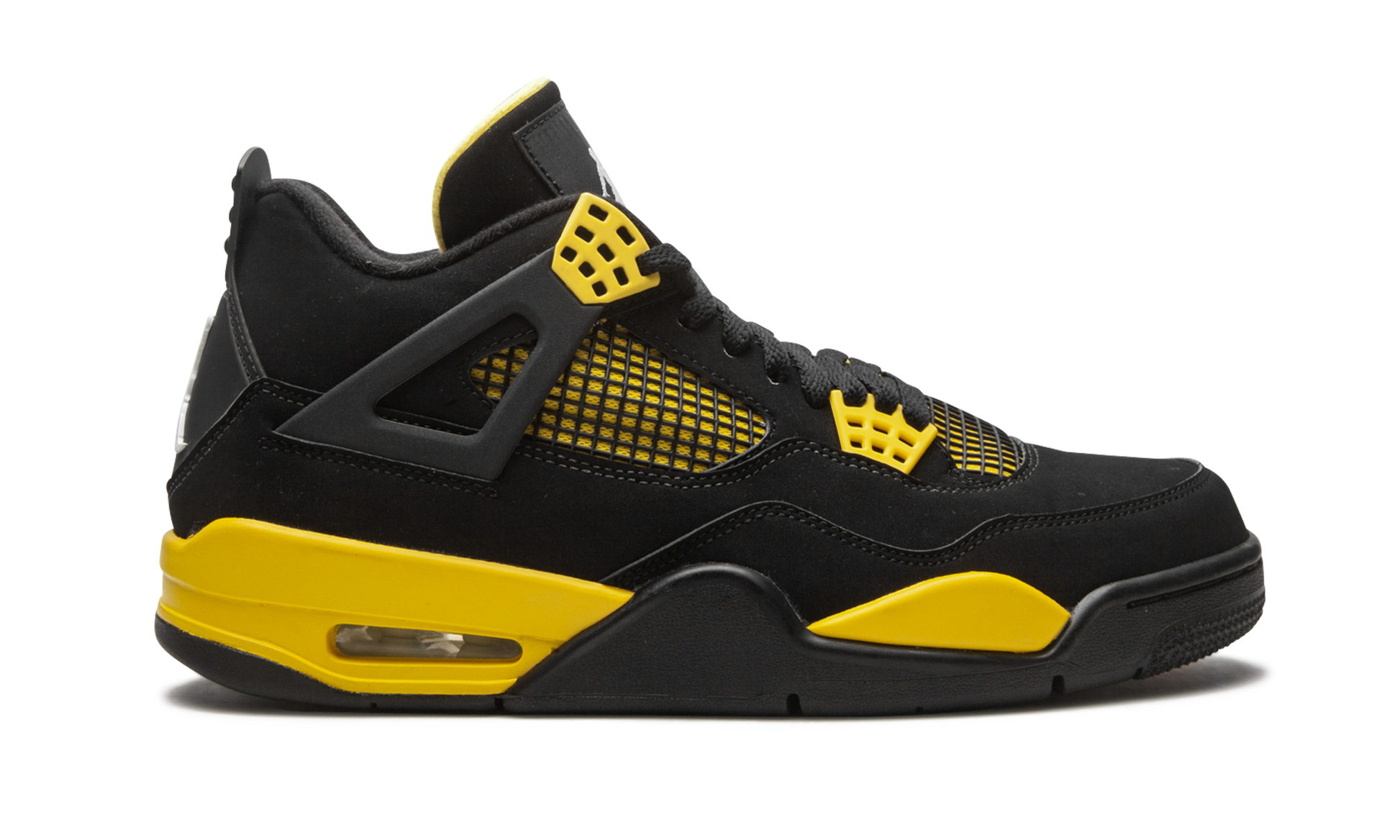 Originally released in 2006, the popular “Thunder” colorway of the Air Jordan 4 was back in 2012 for a refresh. Reversing its accompanying “Lightning” colorway, the shoe features a black upper with Tour Yellow accents. Thunder