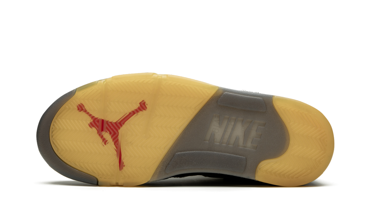 The Off-White x Air Jordan 5 is Virgil Abloh’s rendition of Michael Jordan’s fifth signature shoe that incorporates the former’s deconstructed design ethos. The NBA All-Star Weekend 2020 release omits the Jordan 5’s traditional leather construction for a light grey synthetic, semi-translucent material. Circular designs with Abloh’s signature Nike branding motif can be found on the inside of each shoe over the midfoot netting. For the first time ever on a non-original Air Jordan 5 colorway, embroidered Nike Air branding appears on the heel. White “23” detailing covers the heel near the midsole and a fiery red Jumpman covers the 3M-reflective tongue. A pre-yellowed outsole gives the Off-White Jordan 5 the already-worn-in vibe that Abloh often prefers to include on his collaborations with both Nike and Jordan Brand. Release date: February 2020. Off-White