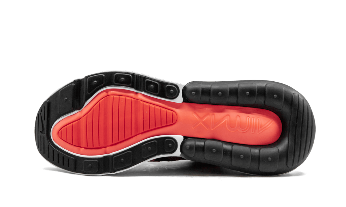The Nike Air Max 270 Flyknit is an updated take on the Air Max 270 lifestyle model that replaces the usual mesh upper with Nike's Flyknit material. This colorway originally debuted in the summer of 2018. It sports a sock-like, black Flyknit upper with an infrared overlay wrapping the heel. More infrared can be seen on the "Air" branding on each medial side, insole, and outsole. A yellow Swoosh on each toe adds additional contrast. The Nike Air Max 270 Flyknit sits atop a chunky 270-degree Air bubble for superior cushioning and comfort.