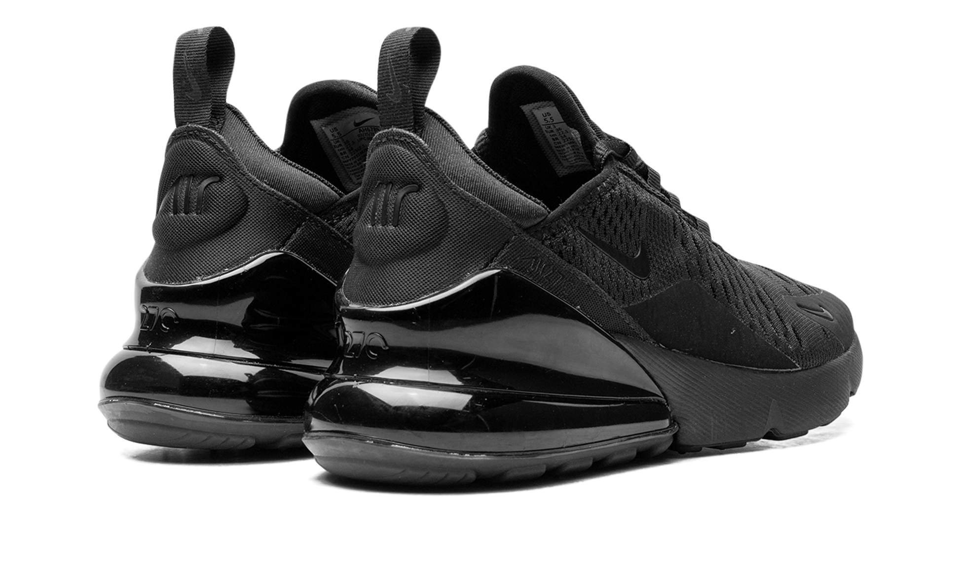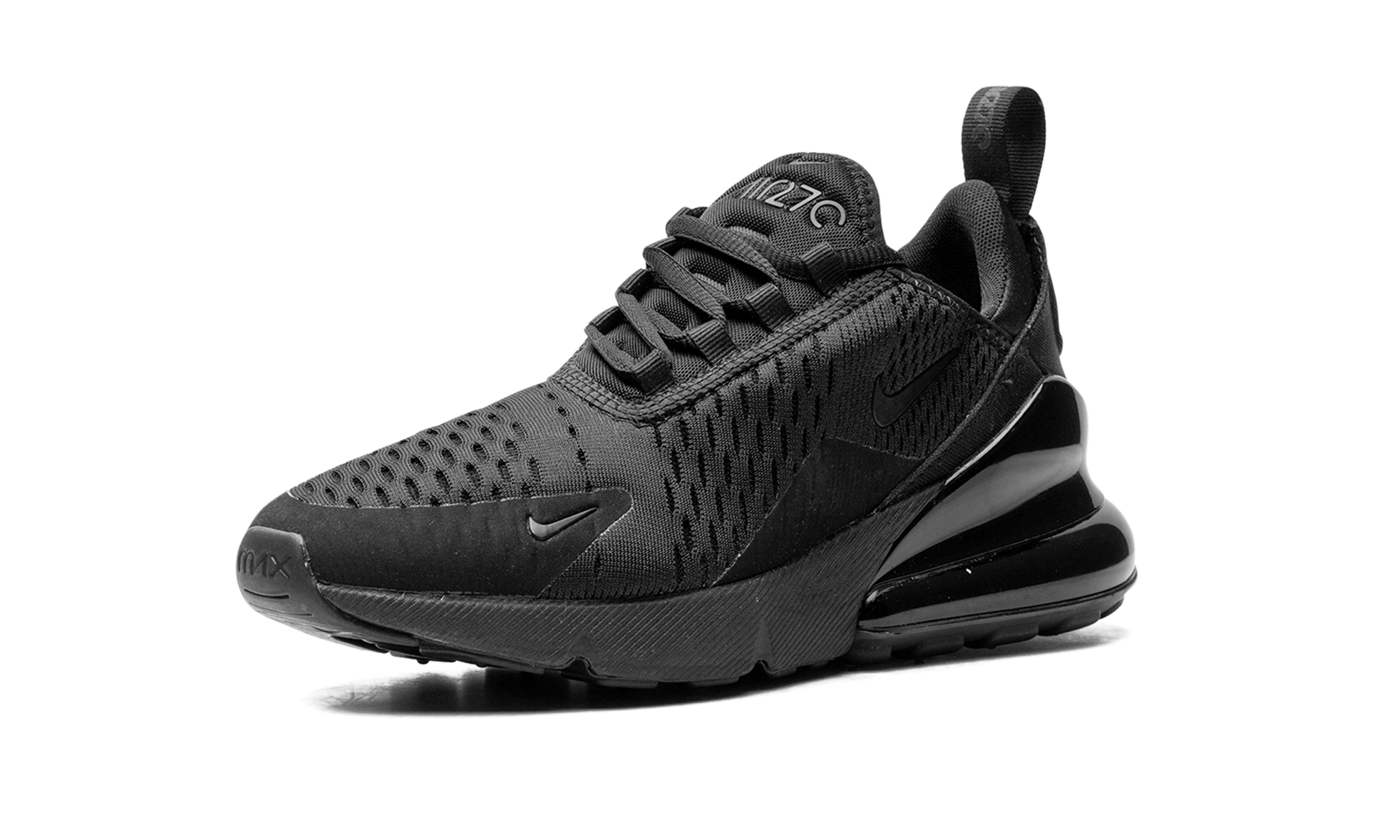 The Women’s Nike Air Max 270 “Triple Black” is a women’s version of the comfortable and stylish model. Based on the classic Air Max 93, the Air Max 270 sports a giant 360-degree Air unit on its heel that is inspired by the design of the Air Max 93’s oversized cushioning tech. While the styling is similar, the Air Max 270 features several notable updates, including a black mesh base and black neoprene heel counter. The model’s bootie-like construction allows the wearer to effortlessly slip in and out of the shoe. Branding appears in the form of a tonal Swoosh on the forefoot and lateral heel and “Air” branding is embossed into the overlay on the back of the shoe. The previously mentioned Air unit displays a subtle black tint and the foam midsole is also black to round out the monochromatic look. Triple Black