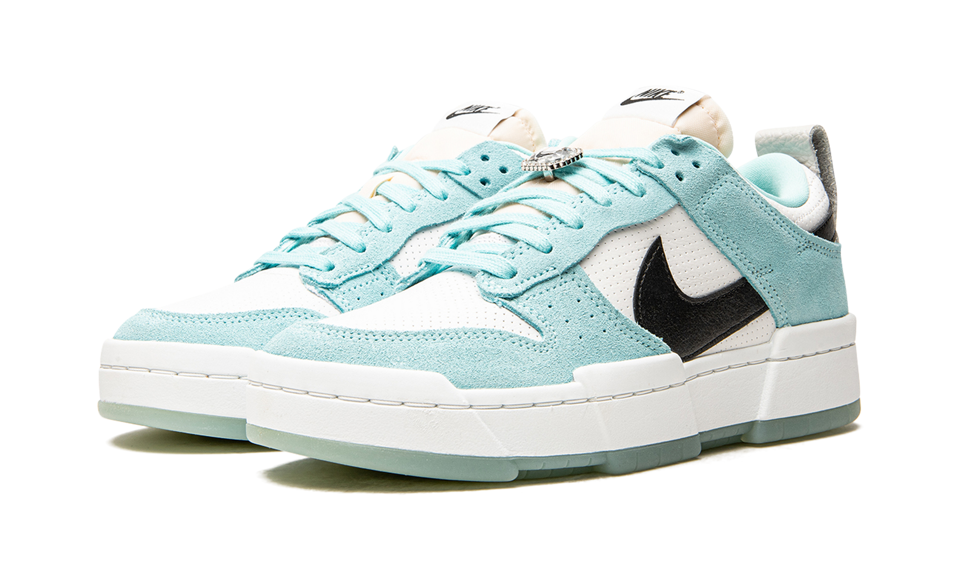 The Women’s Nike Dunk Low Disrupt “Copa” is a fresh colorway of the modified version of the Dunk that draws loose design inspiration from the Nike Air Train from 1984. Introduced by Nike in 2020, the Dunk Low Disrupt brings a casual option to the old school performance shoe. The “Copa” colorway features a white perforated leather base. Nike designs the overlays in Copa-colored (aqua blue) suede and the oversized Swoosh, which is partially hidden by the leather collar, on the sides in black leather. An exaggerated midsole with “cutouts” at the forefoot, midfoot, and heel completes the look.
