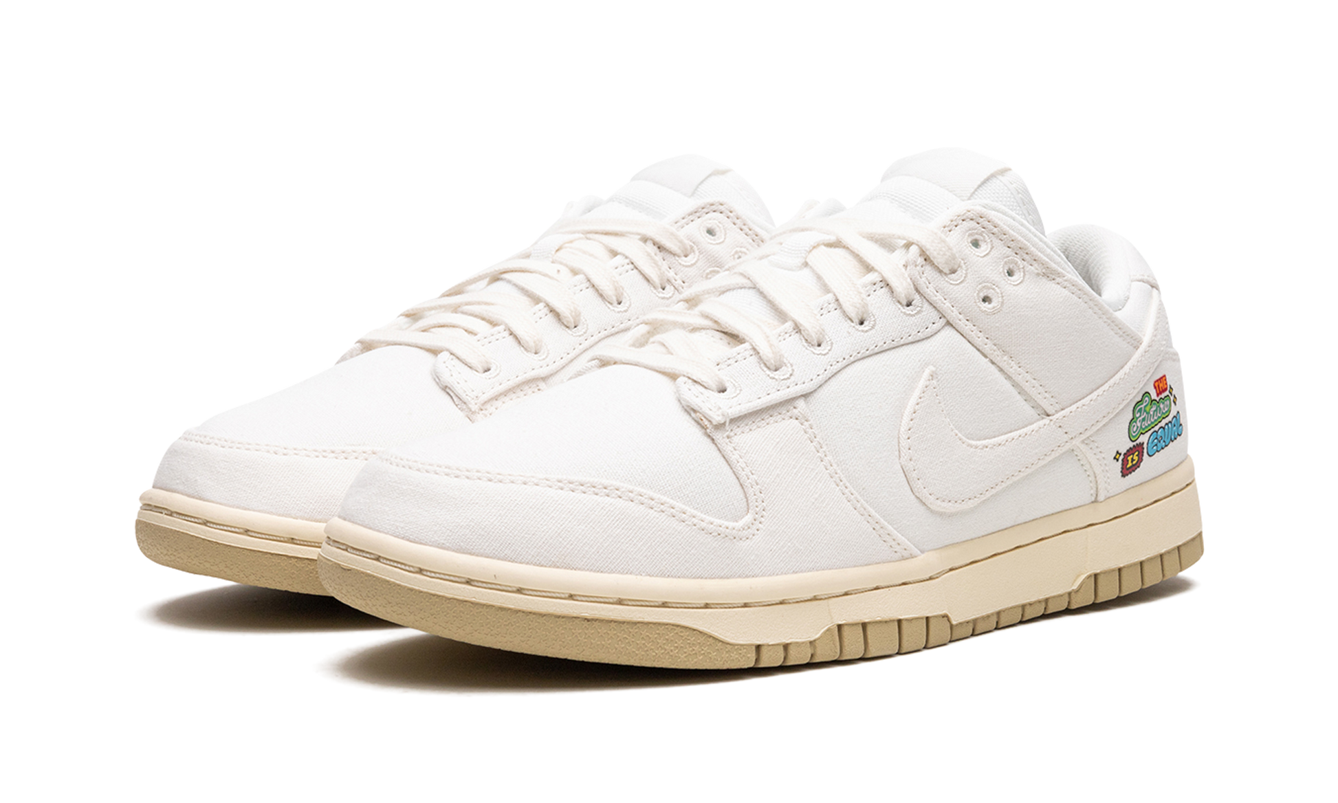 The Women’s Nike Dunk Low “The Future Is Equal” is a women’s-exclusive colorway of the retro basketball shoe with unique branding. This Dunk Low features an inspirational design with the uplifting slogan of “The Future Is Equal” in a colorful motif on the lateral side of the heel. The graphic also appears on the left shoe’s sockliner, while “Make Your Mark” is printed on the right shoe’s liner. As for the rest of the design, the shoe features a Sail canvas upper with tonal canvas overlays and Swoosh branding. An aged-looking cream midsole gives the sneaker an old school vibe. Release date: March 7, 2023 The Future is Equal