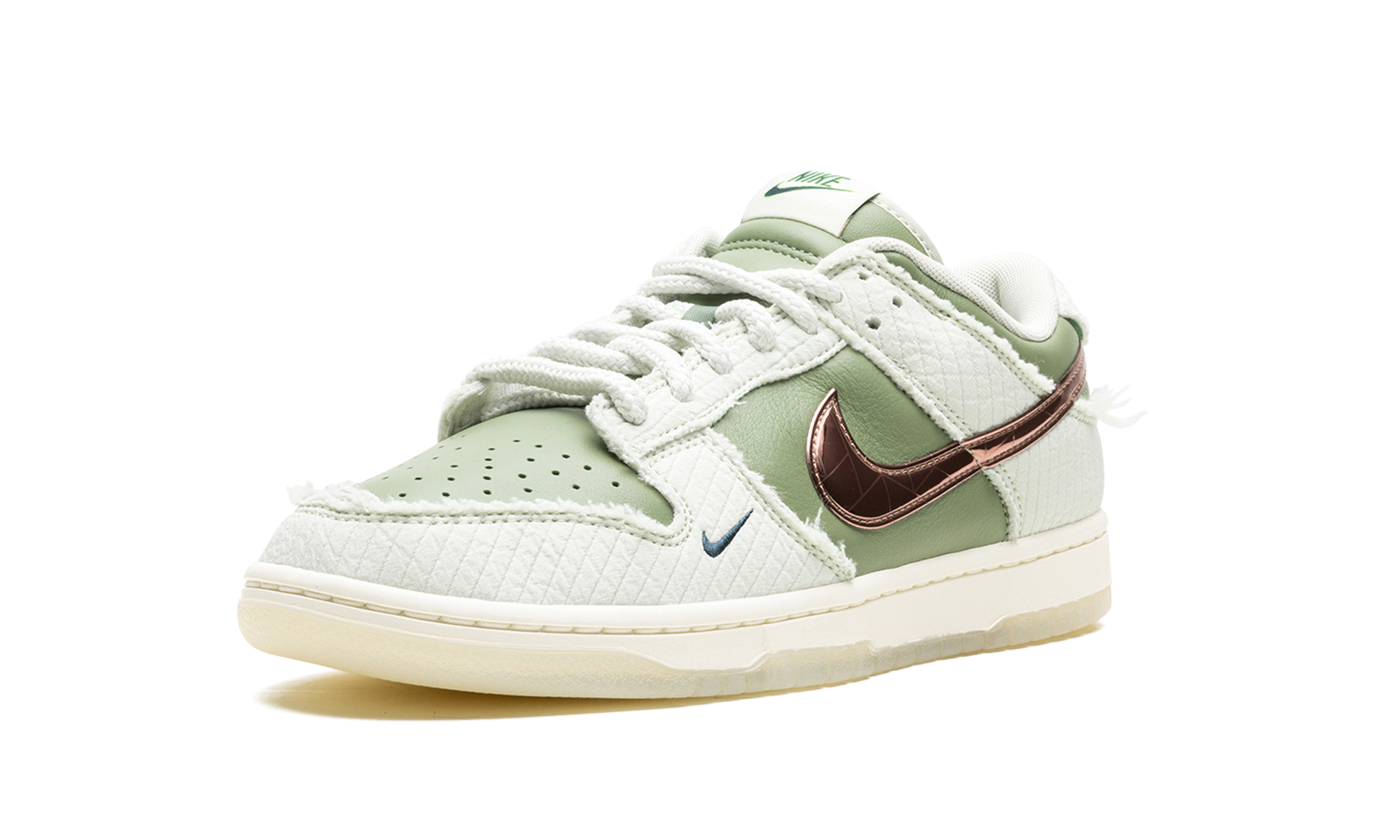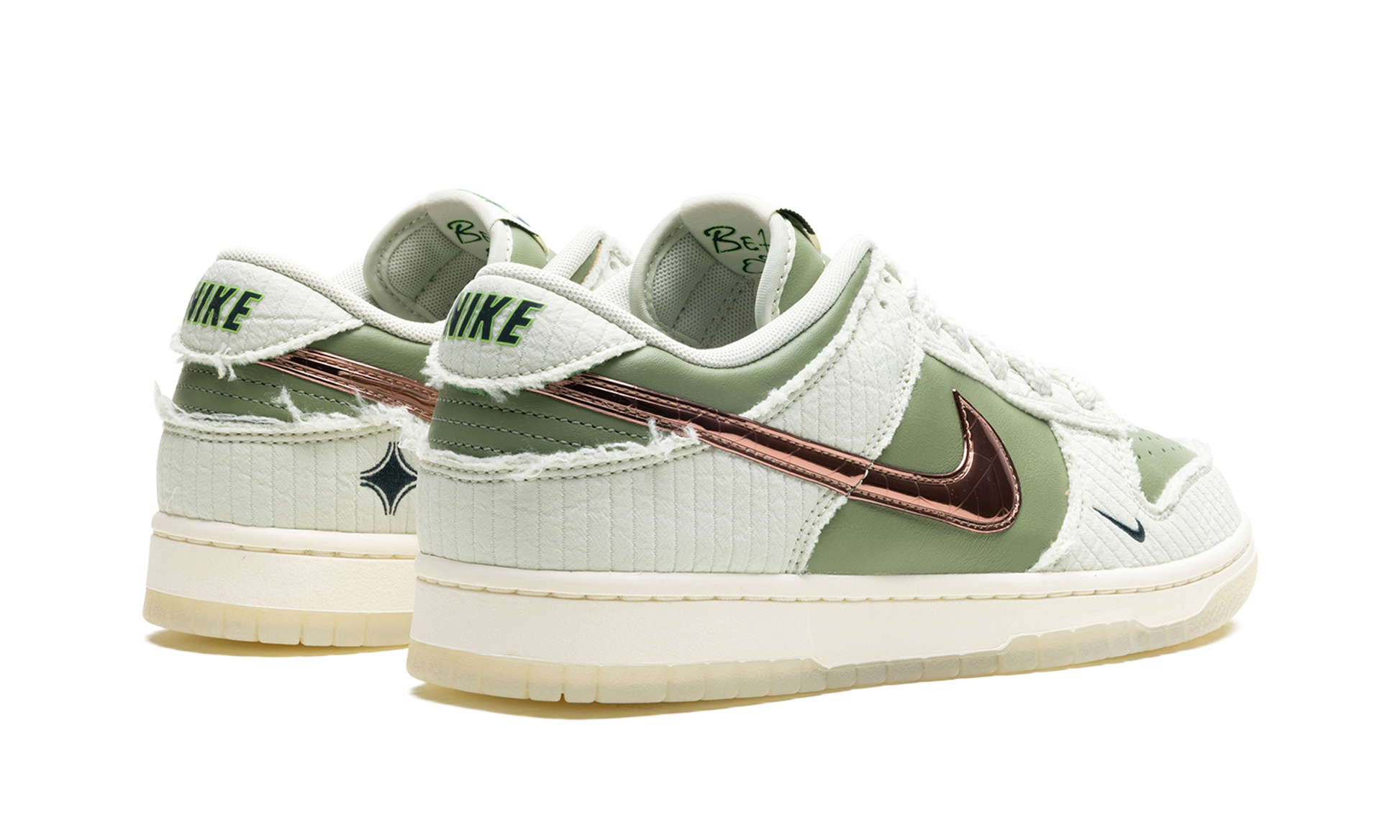 The Kyler Murray x Nike Dunk Low "Be 1 of One" is a colorway of the retro basketball shoe co-designed by the talented football player. Inspired by positivity and inclusivity, the “Be 1 of One” Dunk Low demonstrates Nike’s commitment to promote a healthy community around its sneakers—and beyond. The collaboration with the star NFL quarterback features an olive leather base with quilted light olive-colored overlays with frayed edges. Metallic rose gold Swoosh branding is seen on both sides of the sneaker. Classic “Nike” branding is seen on the heel and tongue tag. “Be 1 of One” detailing is found on the underside of the tongue while thick rope laces appear on top of the tongue. Underfoot, a cream midsole and translucent rubber outsole complete the look. Release date: November 10, 2023 Kyler Murray - Be 1 of One