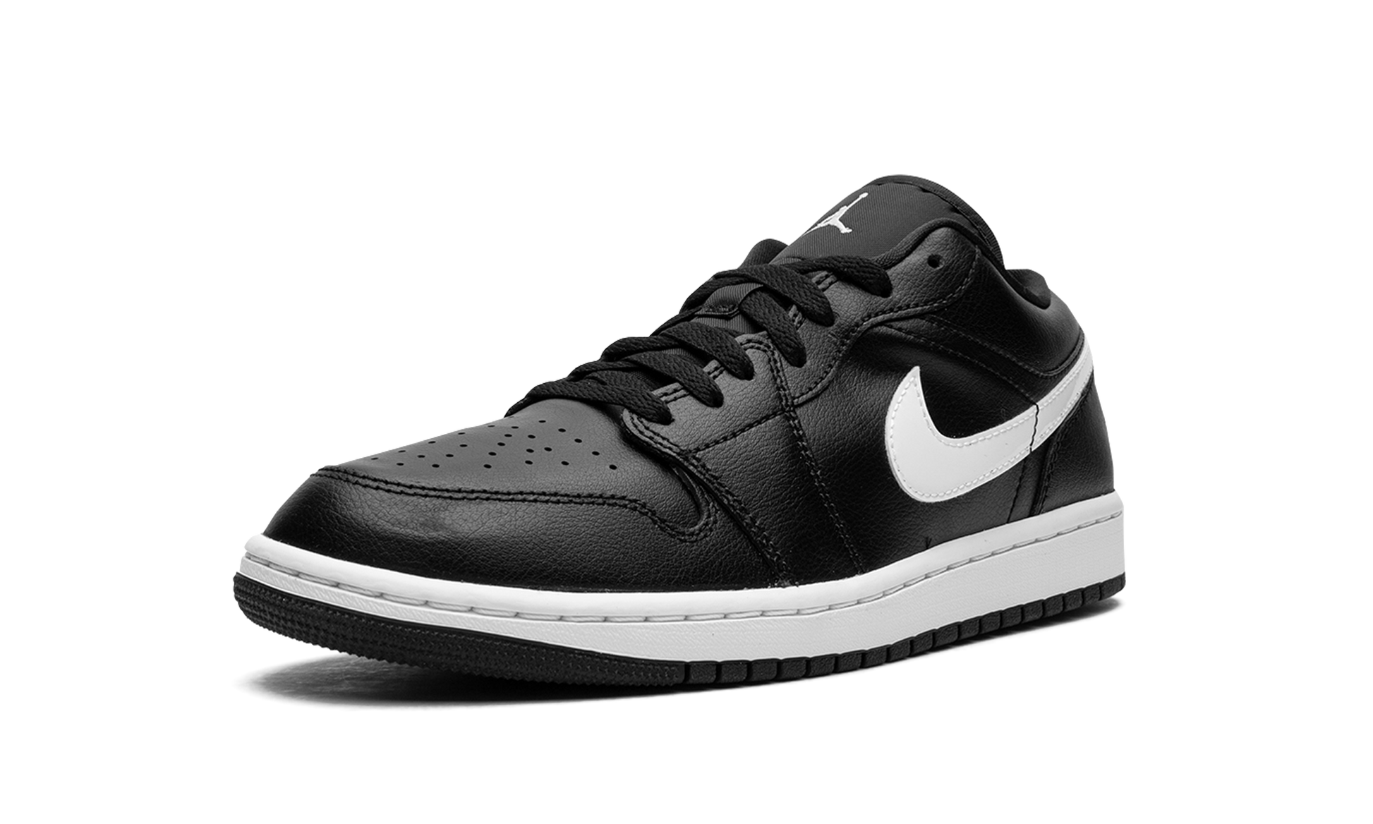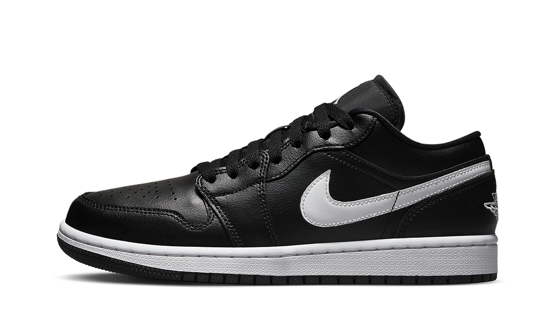 The Women’s Air Jordan 1 Low "Black/White" is the women’s sizing of the low-top retro basketball sneaker with a versatile color block. The upper features a black leather base and black leather overlays on the toe, forefoot, eyelets, collar, and heel. A white leather Swoosh contrasts the shoe’s black-based appearance on either side. “Wings” branding is found on the heel while a Jumpman logo appears on the tongue tag. A white rubber midsole and black rubber outsole complete the clean and simple look. Release date: September 26, 2023 Black / White