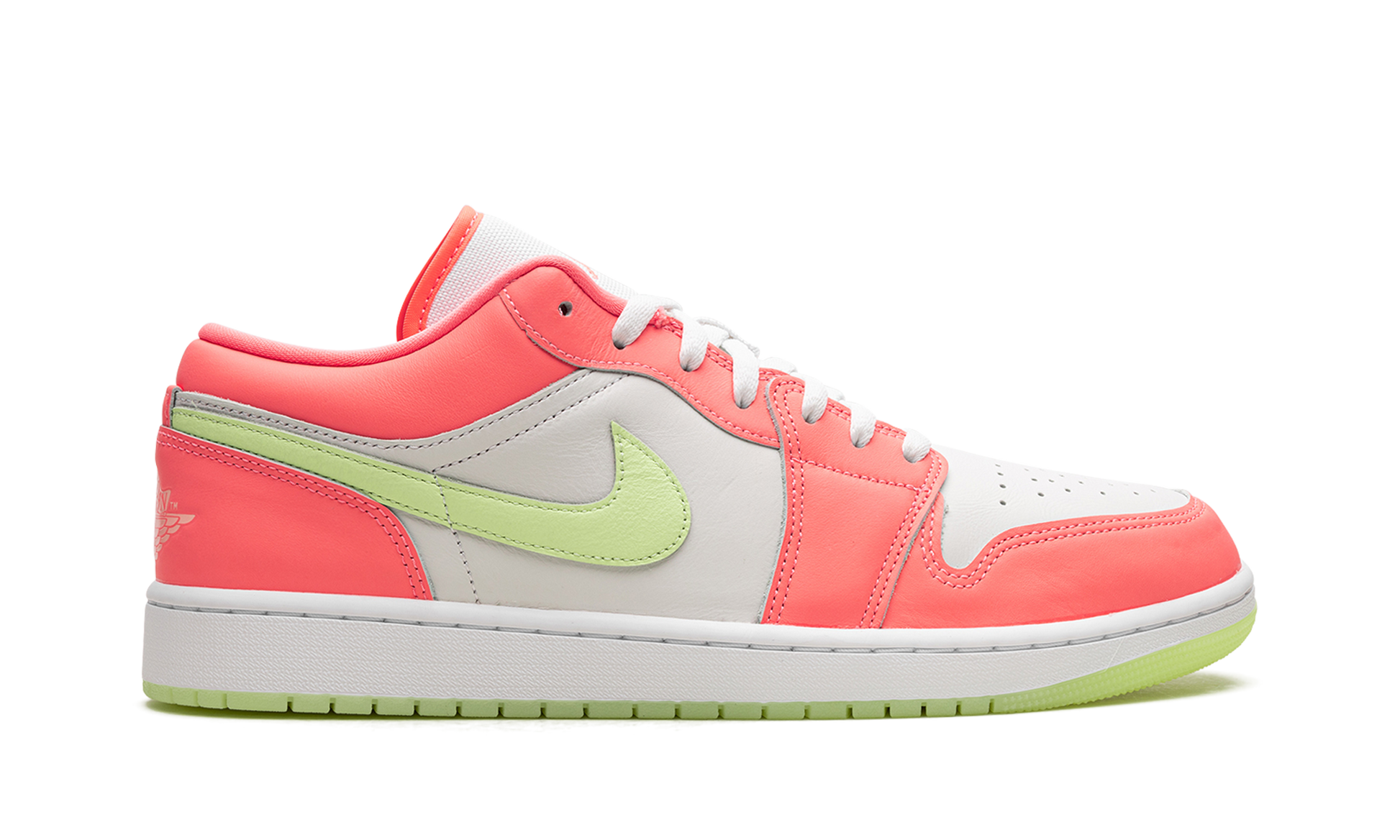 The Air Jordan 1 Low SE “Lava Glow” is a colorway of the retro basketball shoe with a vibrant appearance. The “Lava Glow” features an eye-catching color block that includes white leather on the shoe’s base and Lava Glow leather on its overlay panels. A Barely Volt leather Swoosh is found on each side of the shoe. “Wings” branding is printed on the heel and a Lava Glow Jumpman is embroidered on the tongue. Underfoot, the white rubber midsole and Barely Volt rubber outsole complete the bold colorway. Release date: July 7, 2023 Lava Glow