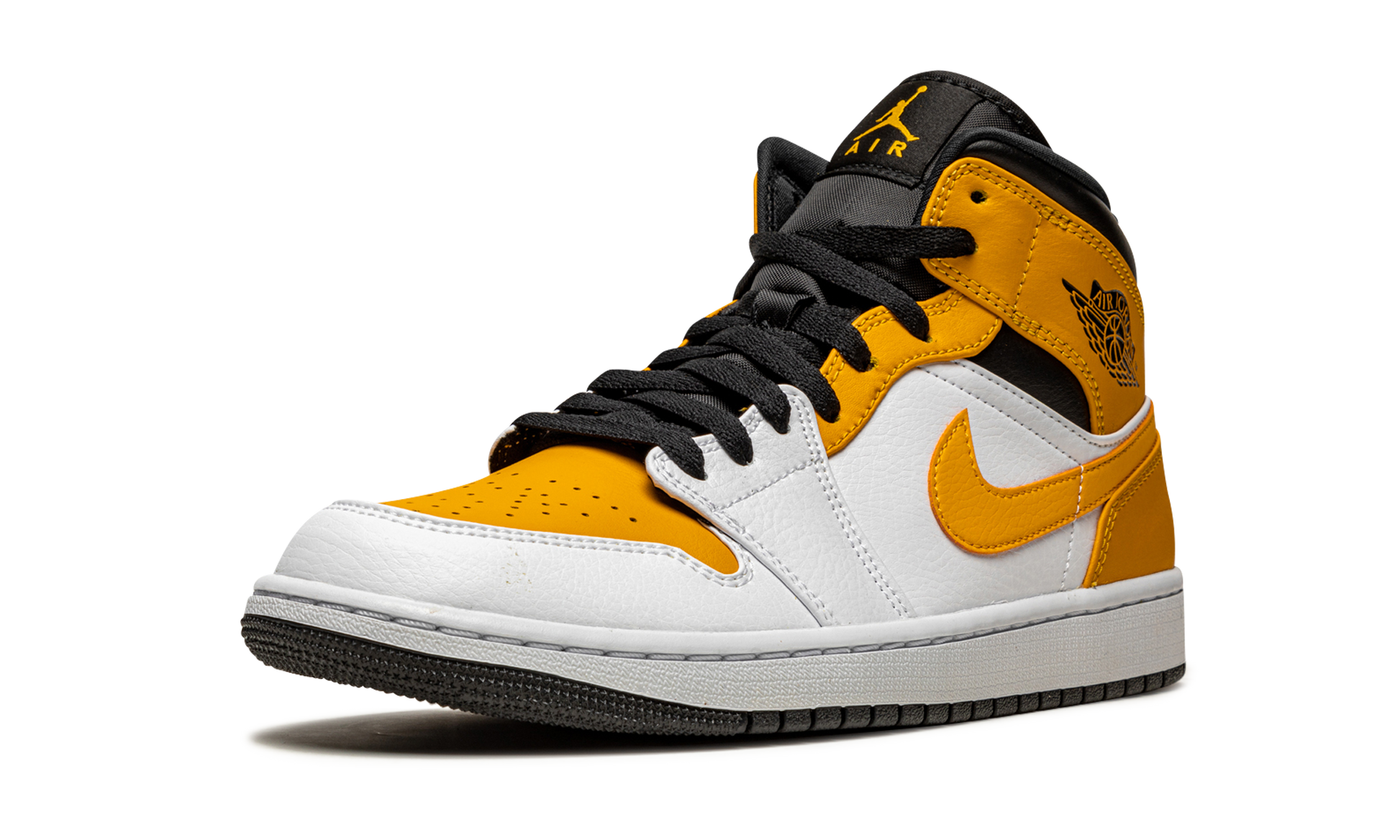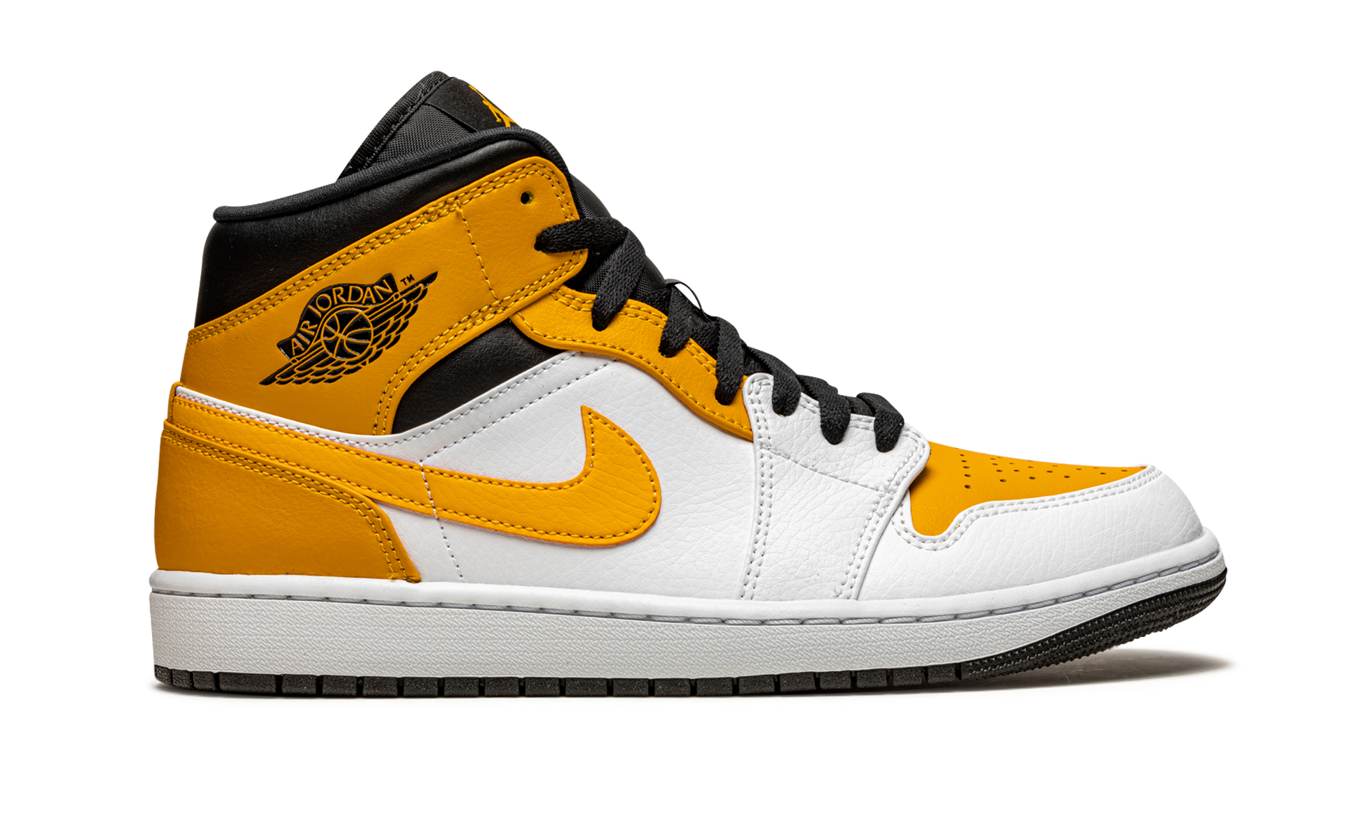 The Air Jordan 1 Mid “University Gold” is a summer-ready colorway of the amid-top version of Michael Jordan’s first signature shoe. Appearing on the popular mid silhouette of the Jordan 1, the “University Gold” features warm University Gold leather detailing on the perforated toe, eyelets, mid-panel, collar, and heel. The same golden hue of leather appears on the Swoosh branding on both sides of the shoe and on the Jumpman insignia on the black nylon tongue tag. A black “Wings” logo can be found on the collar. A crisp cut of white tumbled leather appears on the forefoot, toe cap, and mid-panel. The white midsole is contrasted by a black outsole to round out the look of the Air Jordan 1 Mid “University Gold.” University Gold